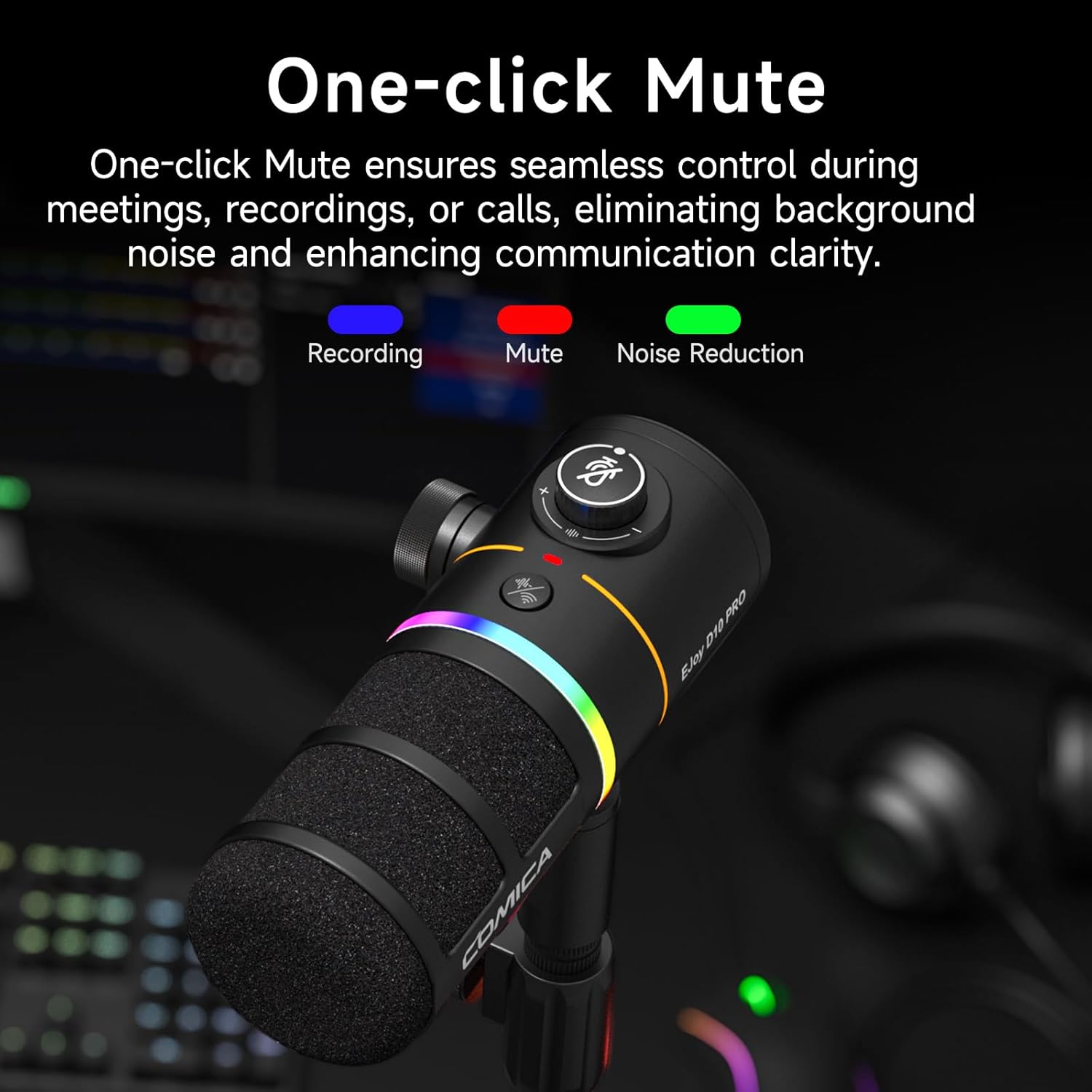 Dynamic Radiant RGB Light:Short press to adjust Audio Dynamic/Comica Orange/ Sea Wave/Colorful Breathing Light/RGB Slow Wave/Rotating Rainbow six RGB light effects. Vibrant RGB lights ignite an incredible live stream atmosphere. Short press to switch bass, nature or bright three kinds of EQ effects, this RGB dynamic mic bringing you different gaming and streaming experiences.