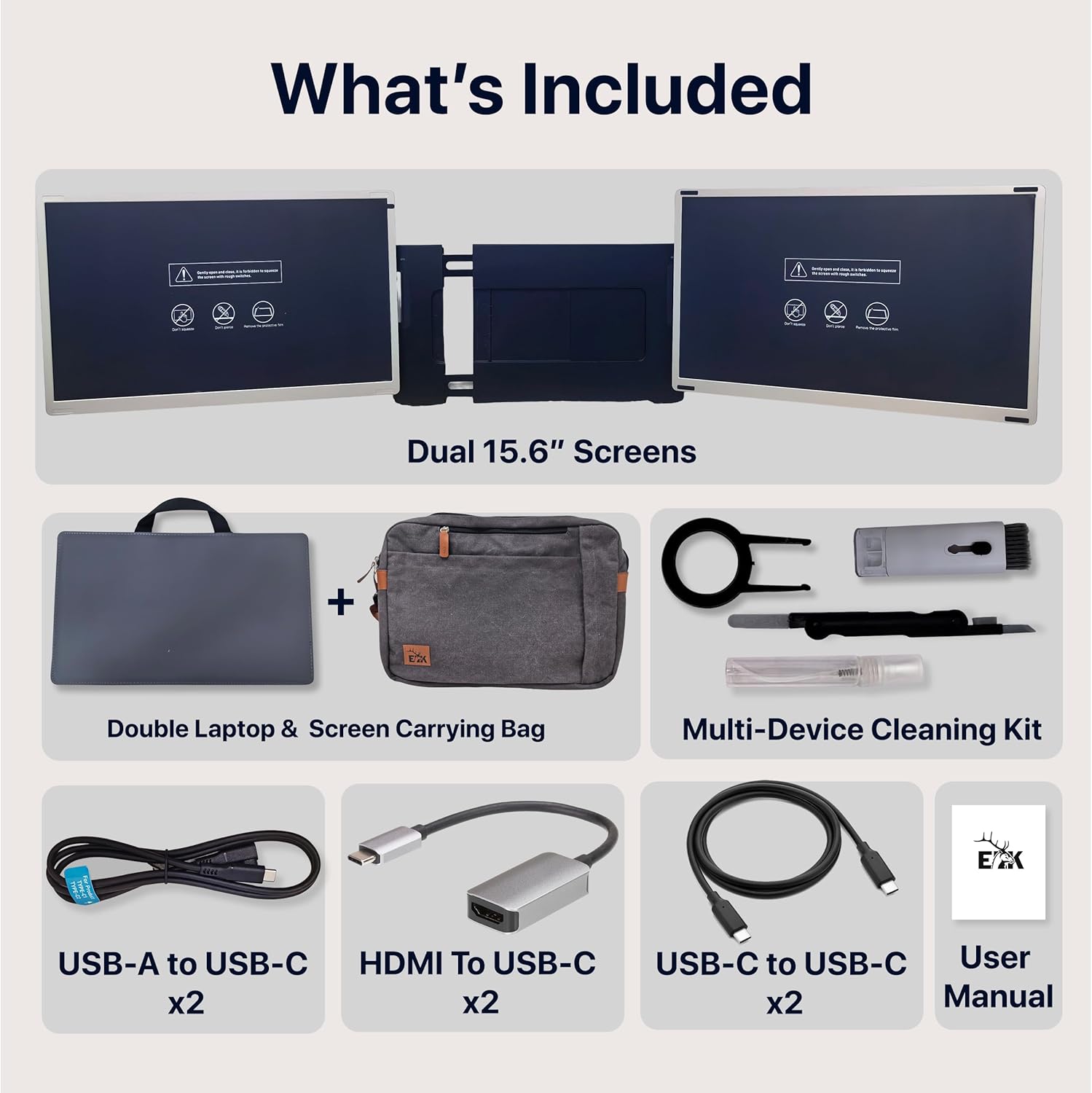 ELK 15.6″ Dual Laptop Screen Extender – Laptop Bag & Cleaning Kit Included – FHD 1080P IPS – Detachable & Adjustable Monitor Extender – with Speakers – Compatible with Mac/Android/Win