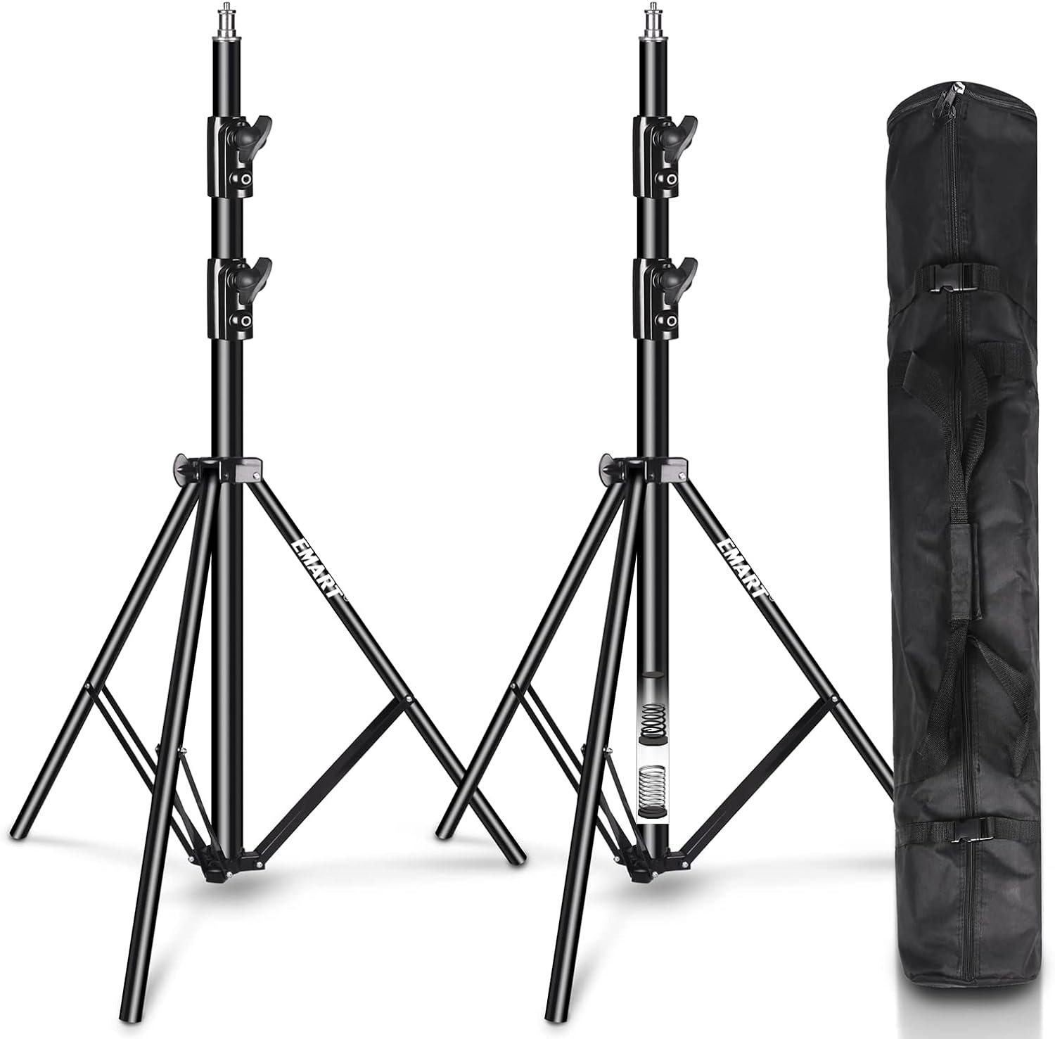EMART 2 Pack Heavy Duty Light Stand 8.5ft, Spring Cushioned, Aluminum Construction, Photo Video Studio Tripod with Carrying Bag for Photography Lighting, Softbox, Flash