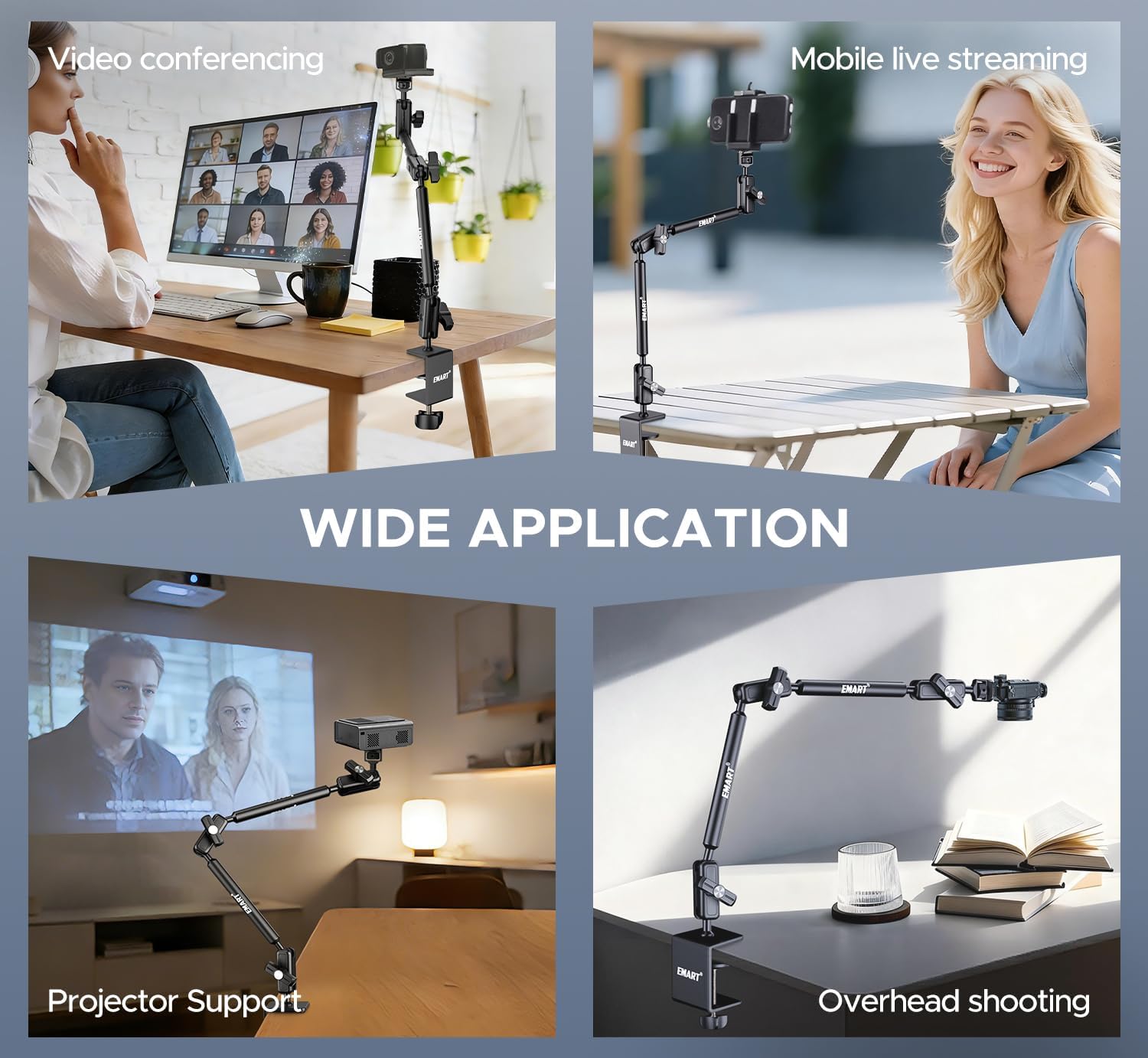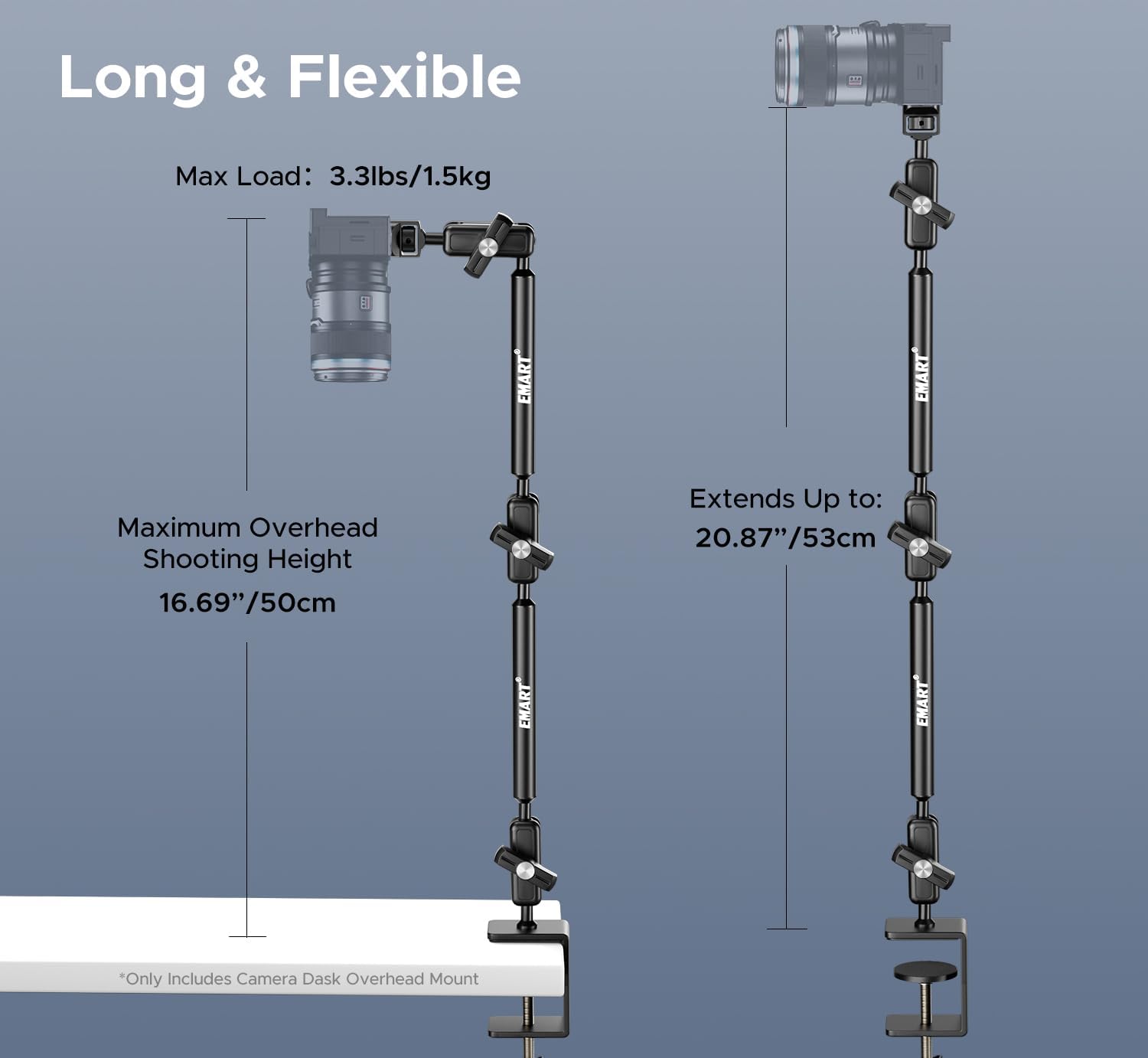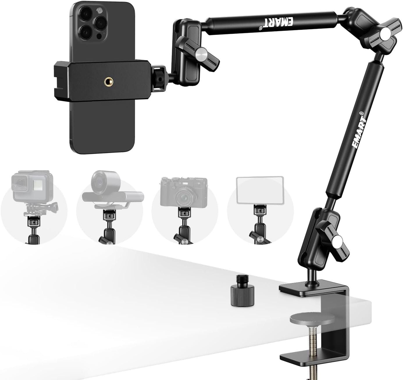 EMART Overhead Camera Mount with 21”Magic Arm and C Clamp,Overhead Phone Mount with 1/4”&3/8” Screw,Articulating Desktop Boom Arm Compatible with Webcam/Monitors/Mics for Streaming/Recording