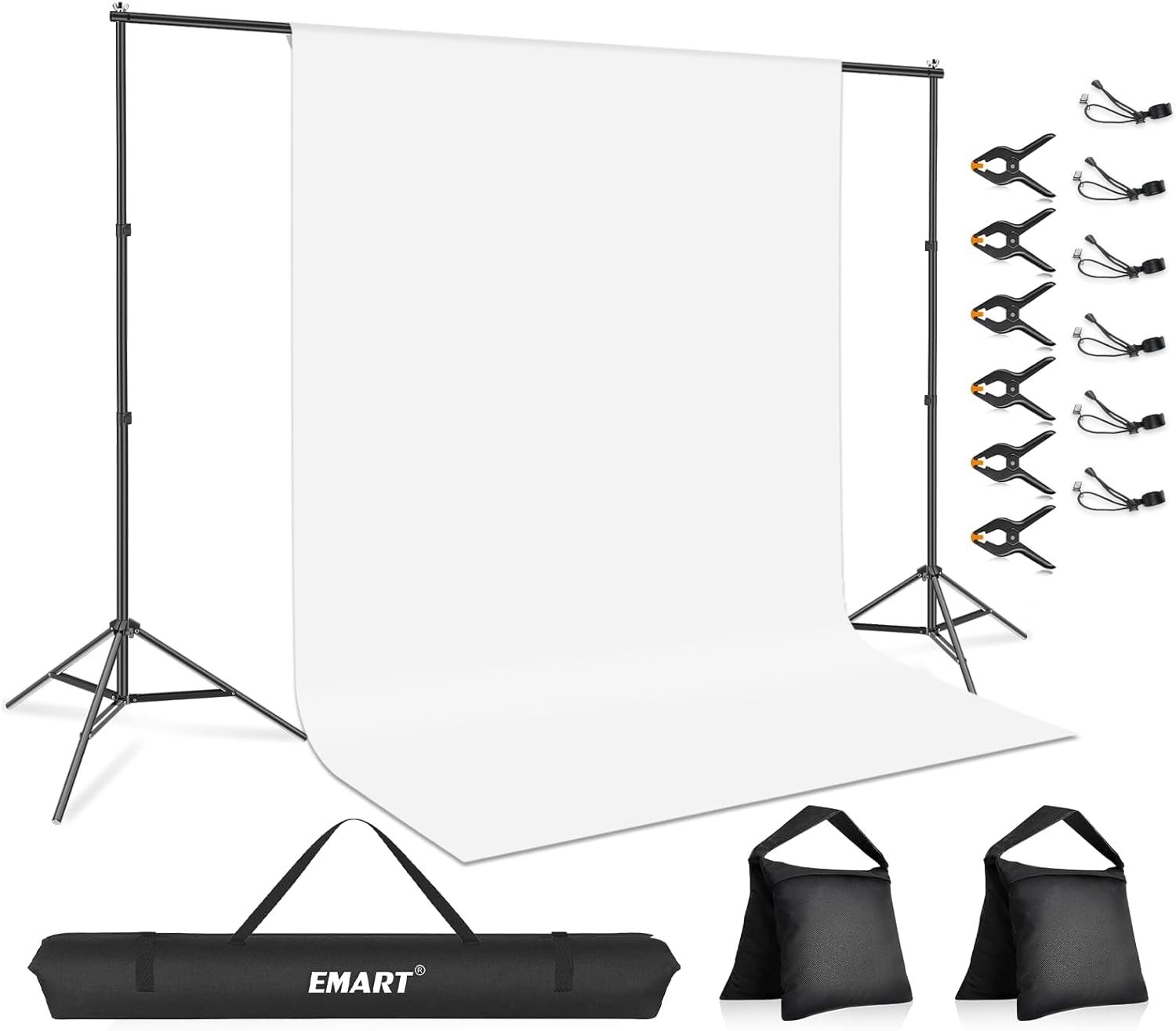 EMART Portable Photography Backdrop Stand Kit 7 x 10 ft with 6 x 9 ft White Backdrop, Adjustable Background Support System for Photo Video Studio, Photoshoot, Party, Live Game, Interviews