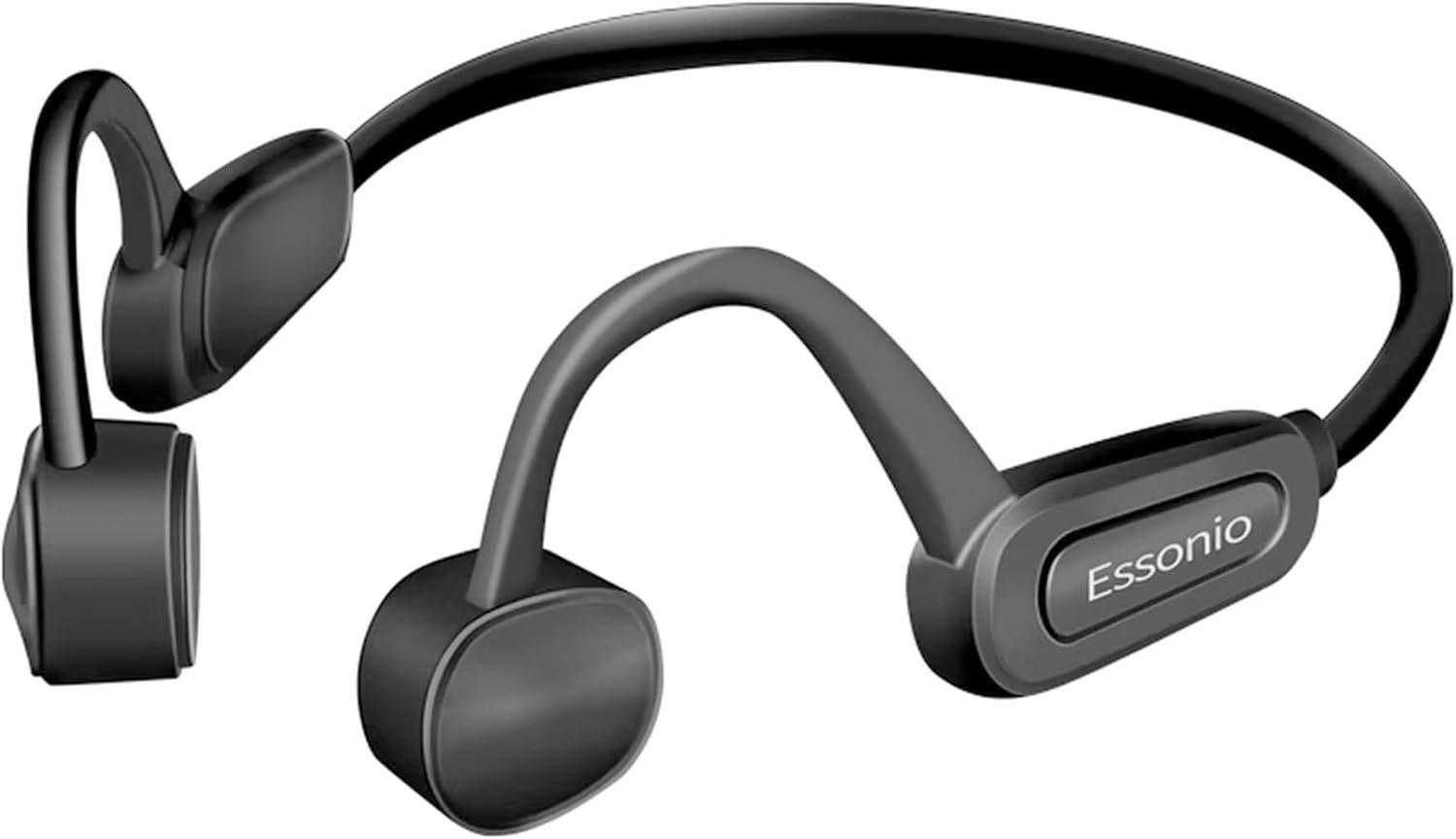 Essonio Bone Conduction Headphones IPX8 Waterproof for Swimming, 16GB MP3 Player Bluetooth 5.0 Open Ear Headphones, 12H Battery, Secure Fit for Running & Cycling Black