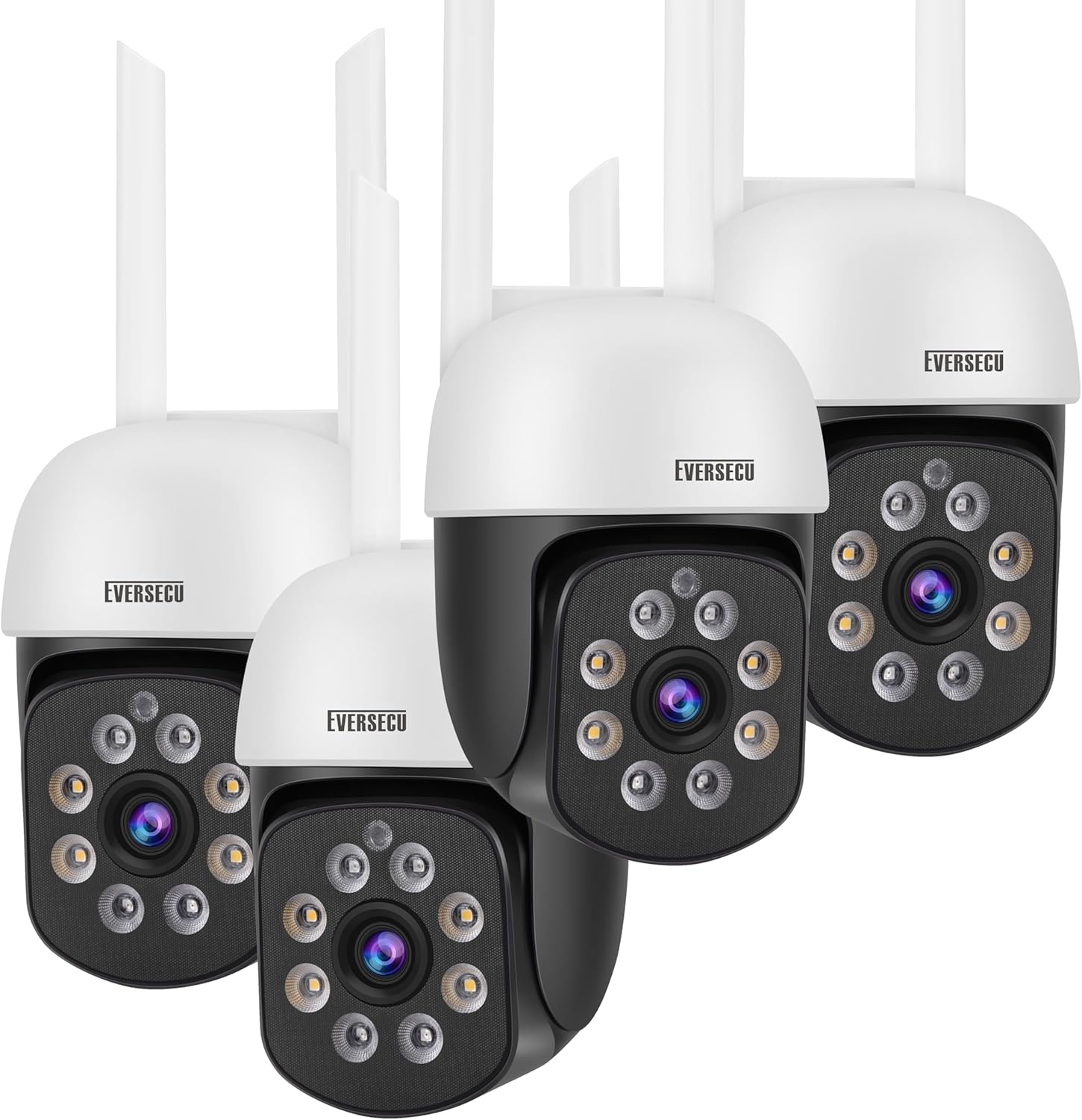 EVERSECU 2K 3.0MP Outdoor WiFi PTZ Security Camera, 2.4G WiFi, Auto Tracking, 2 Way Audio, Spot Night Vision, Compatible with Alexa, SD Card & Cloud Storage, ONVlF Compliant RTSP IP CCTV Camera(4pcs)