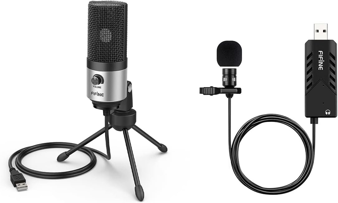 FIFINE External Mic for Laptop and Lavalier Microphone, USB Condenser Desktop Mic with Gain Control,Lapel Microphone for Zoom Video Meeting Online Class on PC Computer Windows/Mac (K669S+K053)