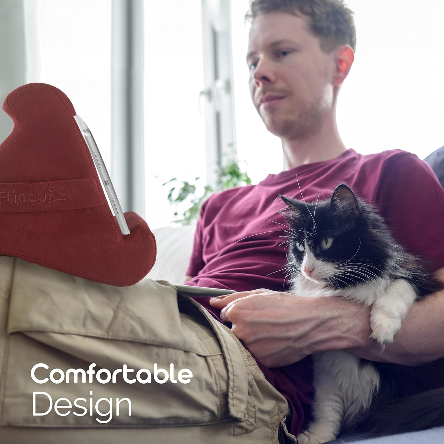 ERGONOMIC DESIGN BY U.S. DESIGNER: Designed by a U.S. designer, Flippy offers steady positioning as an iPad stand, Kindle holder, or tablet pillow, helping maintain a comfortable setup during extended reading, streaming, or device use.