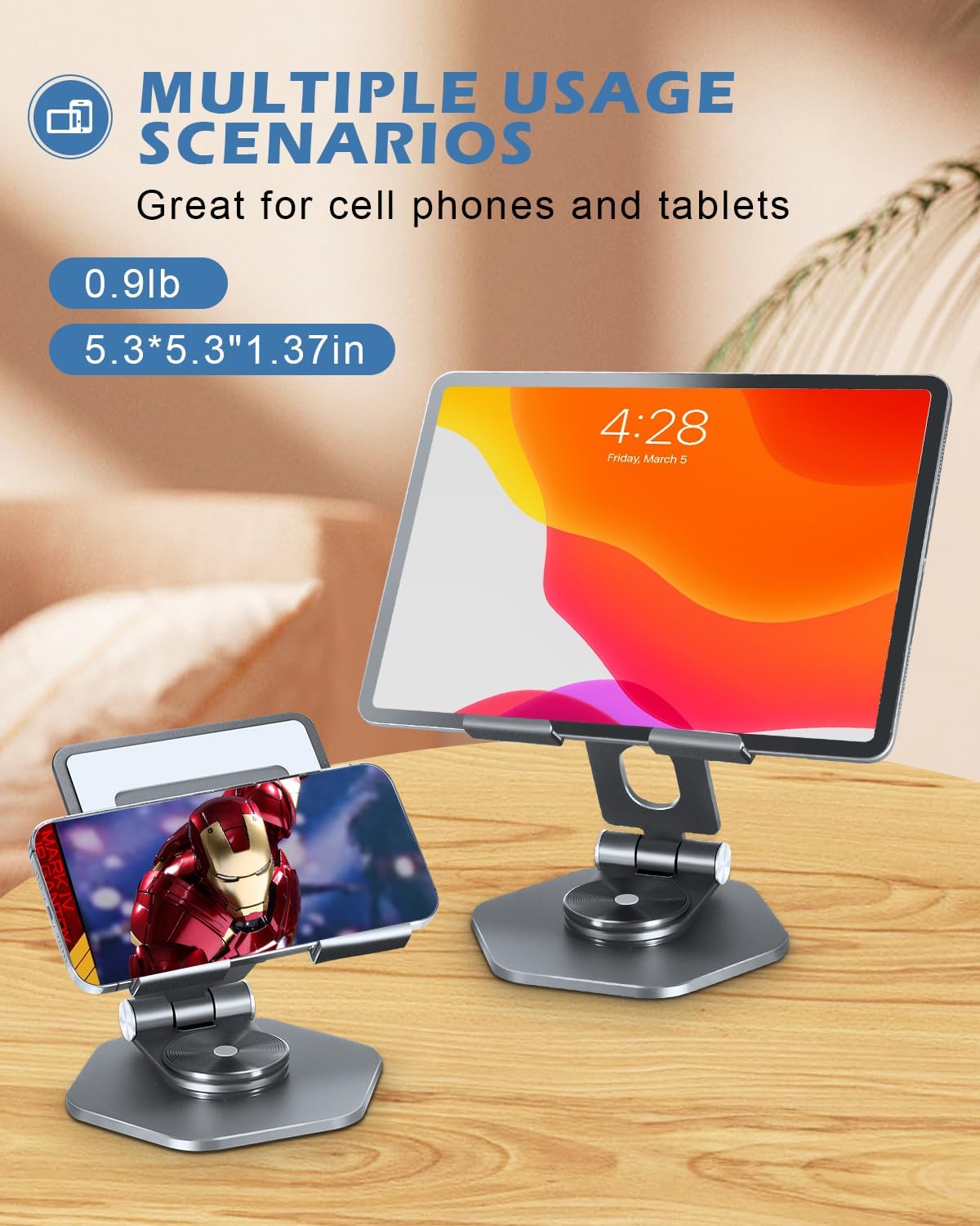 【Compatible and Service】The tablet stand holder Compatible with iPad Air 4/Mini, New iPad 10.2/9.7, iPad Pro 11/12.9, Samsung, iPhone 11 12 13 Pro XS Max /Xr and more, Thank you for experiencing our brand new design,If you are not satisfied with the product, please reach us immediately and we will give you a solution within 24 hours