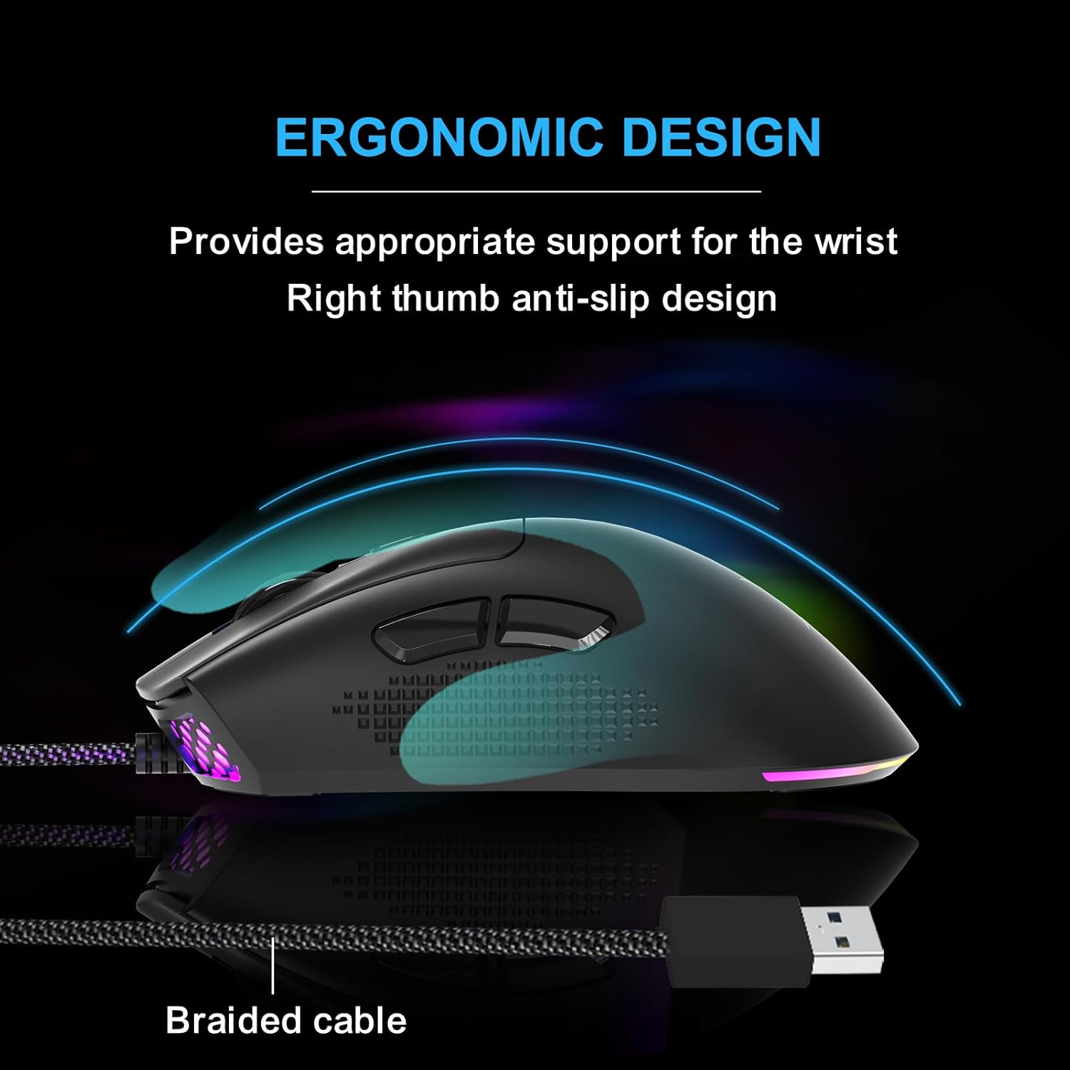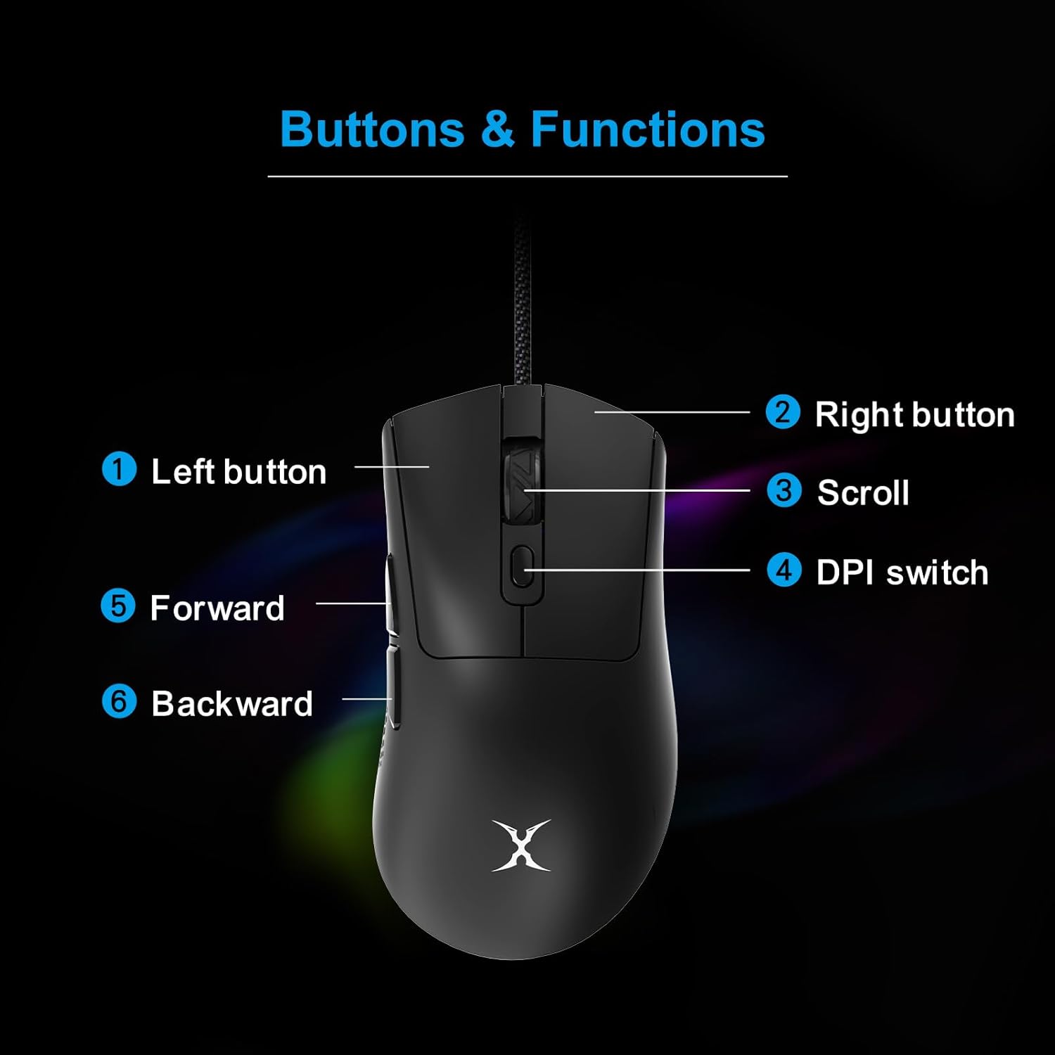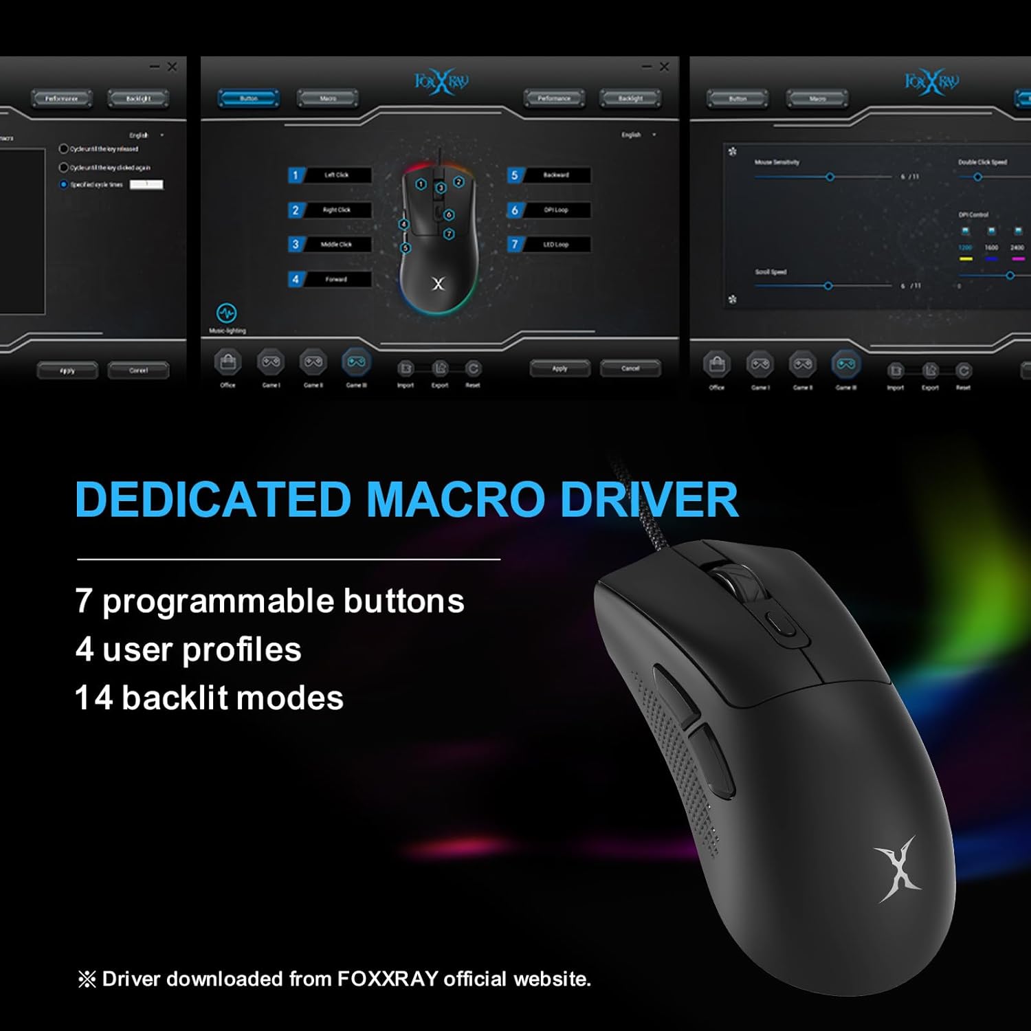 FOXXRAY SM-91 RGB Gaming Mouse, 7200 DPI, 60g Lightweight Wired Optical Mouse with 7