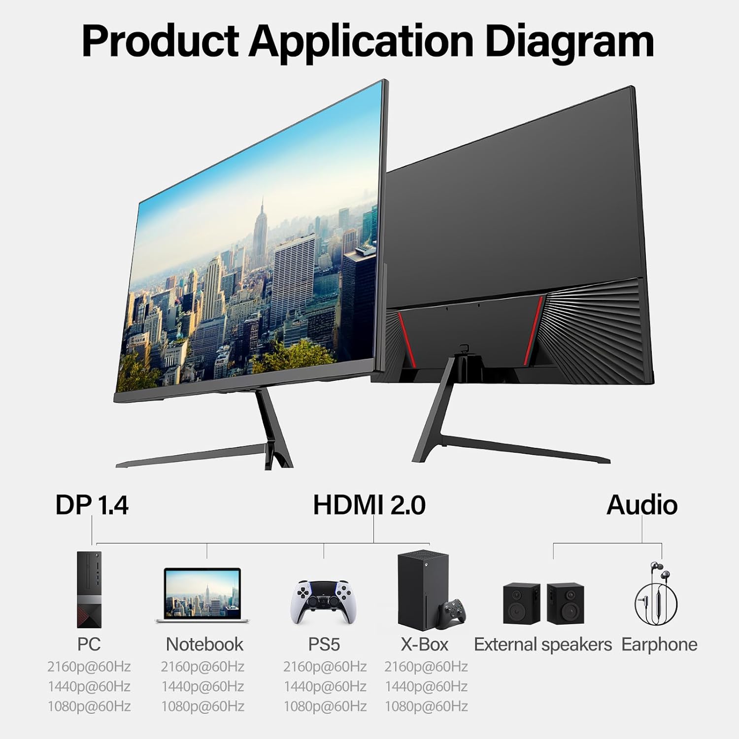 Flexible Connectivity – Gawfolk 27 inch monitor provides HDMI(2.0)*2, DisplayPort(1.4)*2and audio out*1 interfaces, offering connections to PC, laptops, and more. Experience high-quality image transmission, allowing you to seamlessly transition between work and entertainment.