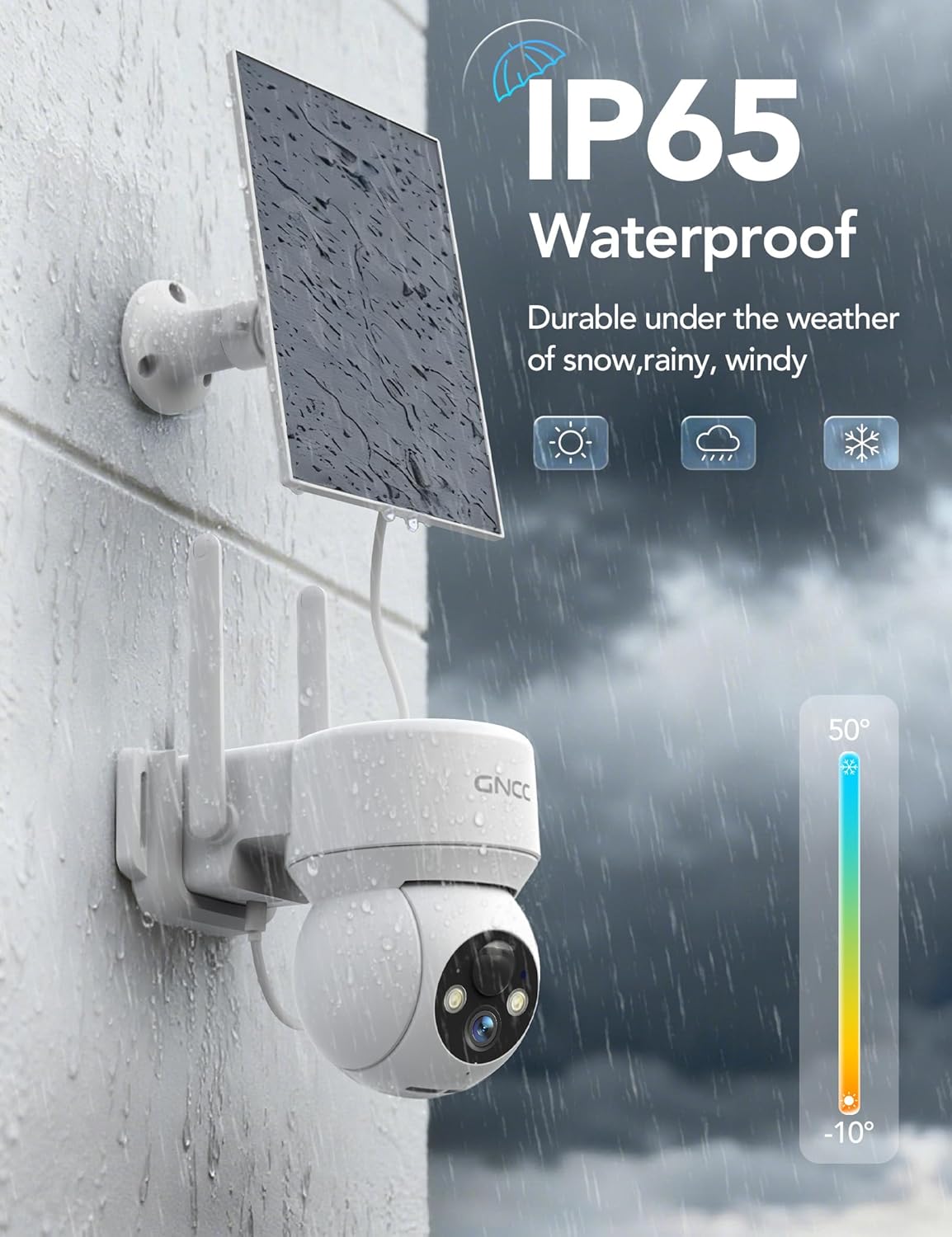 GNCC Solar Security Cameras Wireless Outdoor 2.4G WiFi, 360° View, Solar/Battery Powered, AI Human Detection, Color Night Vision, 2-Way Audio, Spotlight Siren Alarm, IP65 Waterproof, SD/Cloud Storage