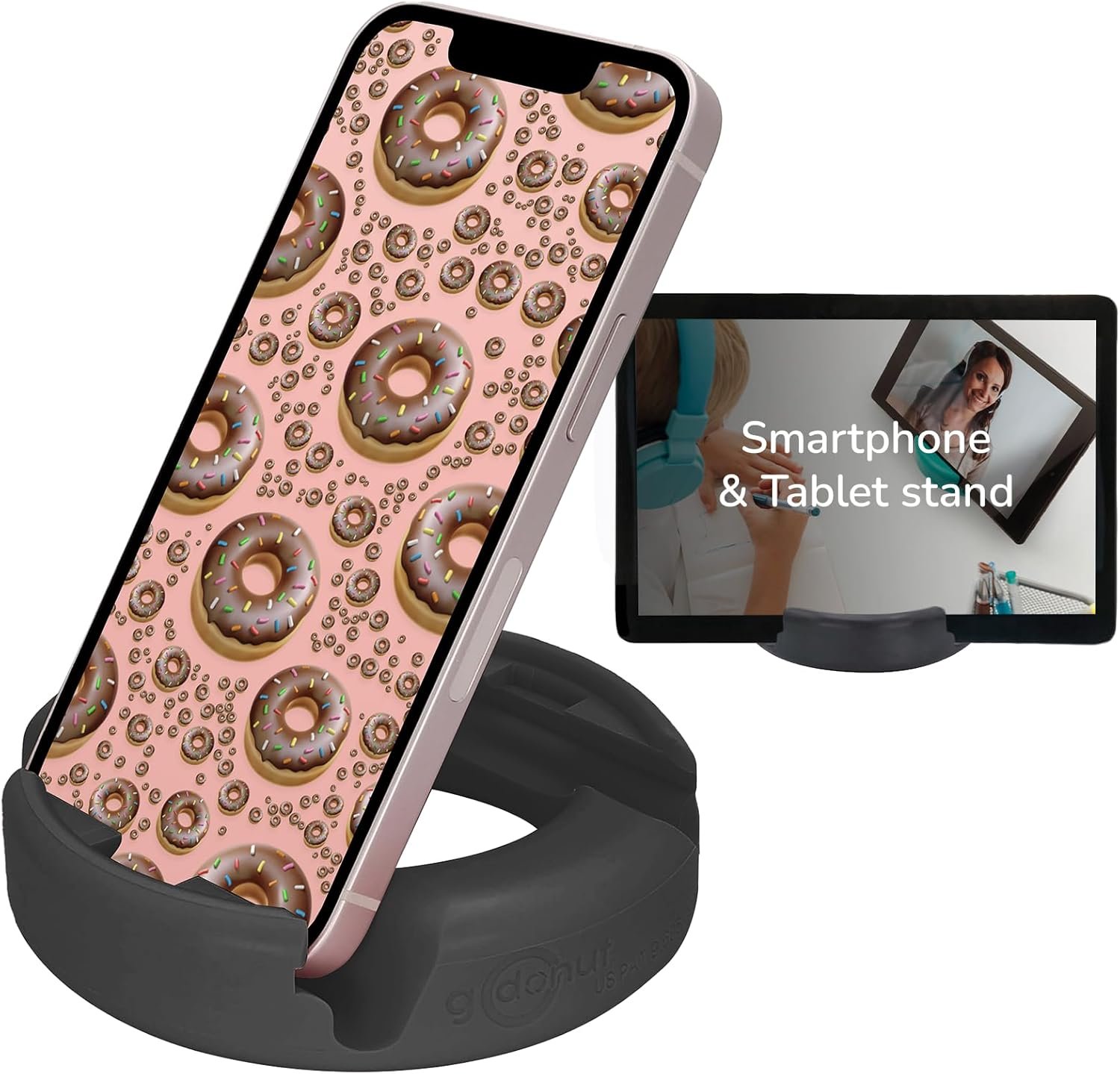 GoDonut – Phone Stand Original – Cell Phone Holder + Tablet Stand Desk Organizer – Compatible with Tablet, iPhone 17 16 15 14 Pro Max, Android & Most Smartphones – Black