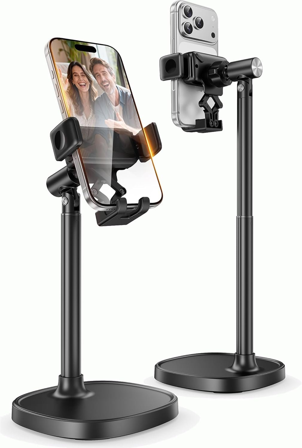 🎄【Easy to Assemble, Well Made & Stable】No tools required—assemble in seconds! Crafted with premium materials and a weighted metal base, this cellphone holder for desk is solid, stable, and stylish. The anti-slip pad keeps it firmly in place while protecting your desk from scratches. A well-made desk essential that blends durability with elegance.