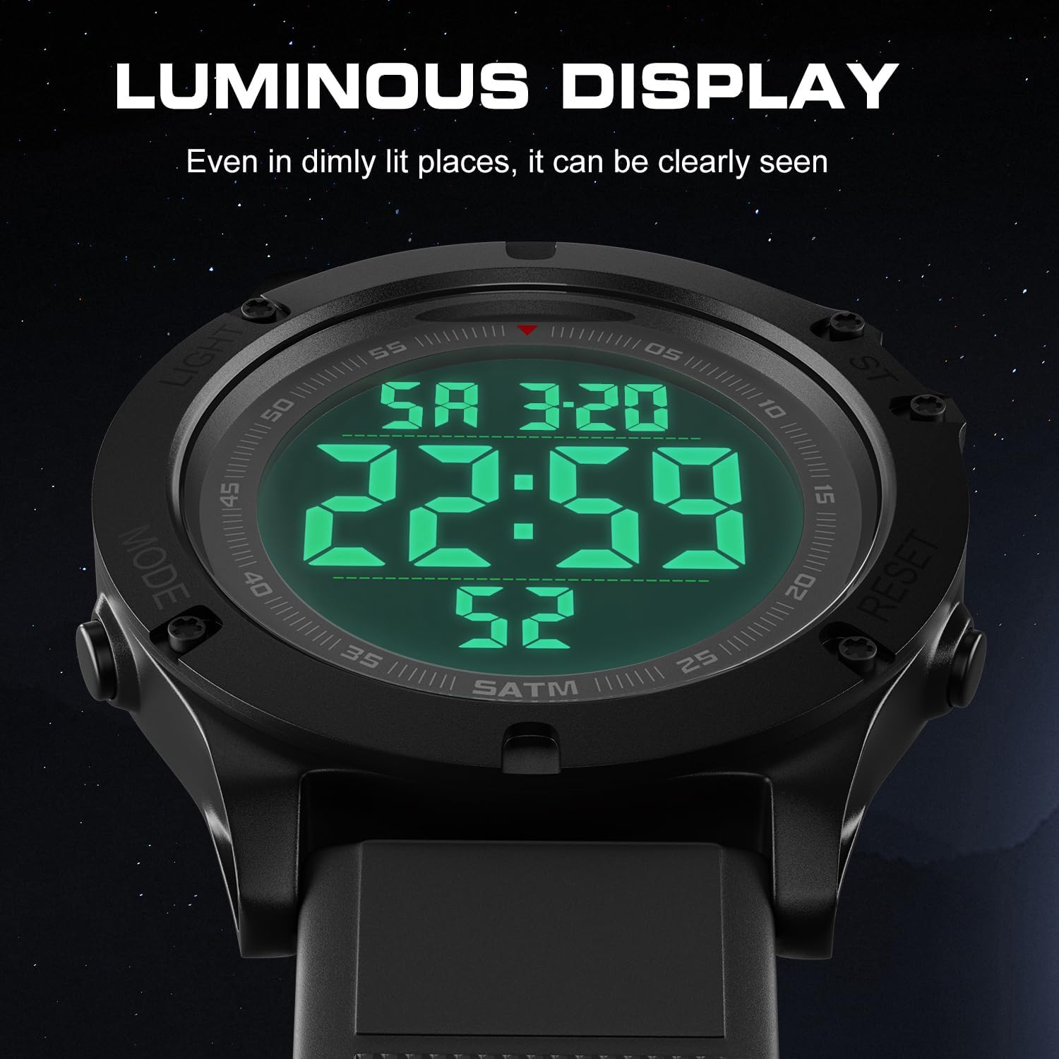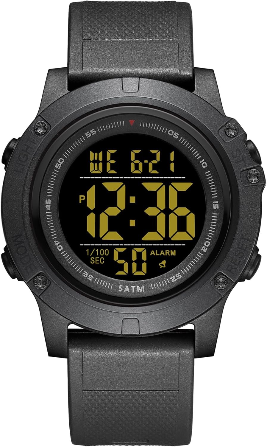 GOLDEN HOUR Mens Digital Sports Watch, Large LCD Display, 5ATM Water Resistant,Silicone Band