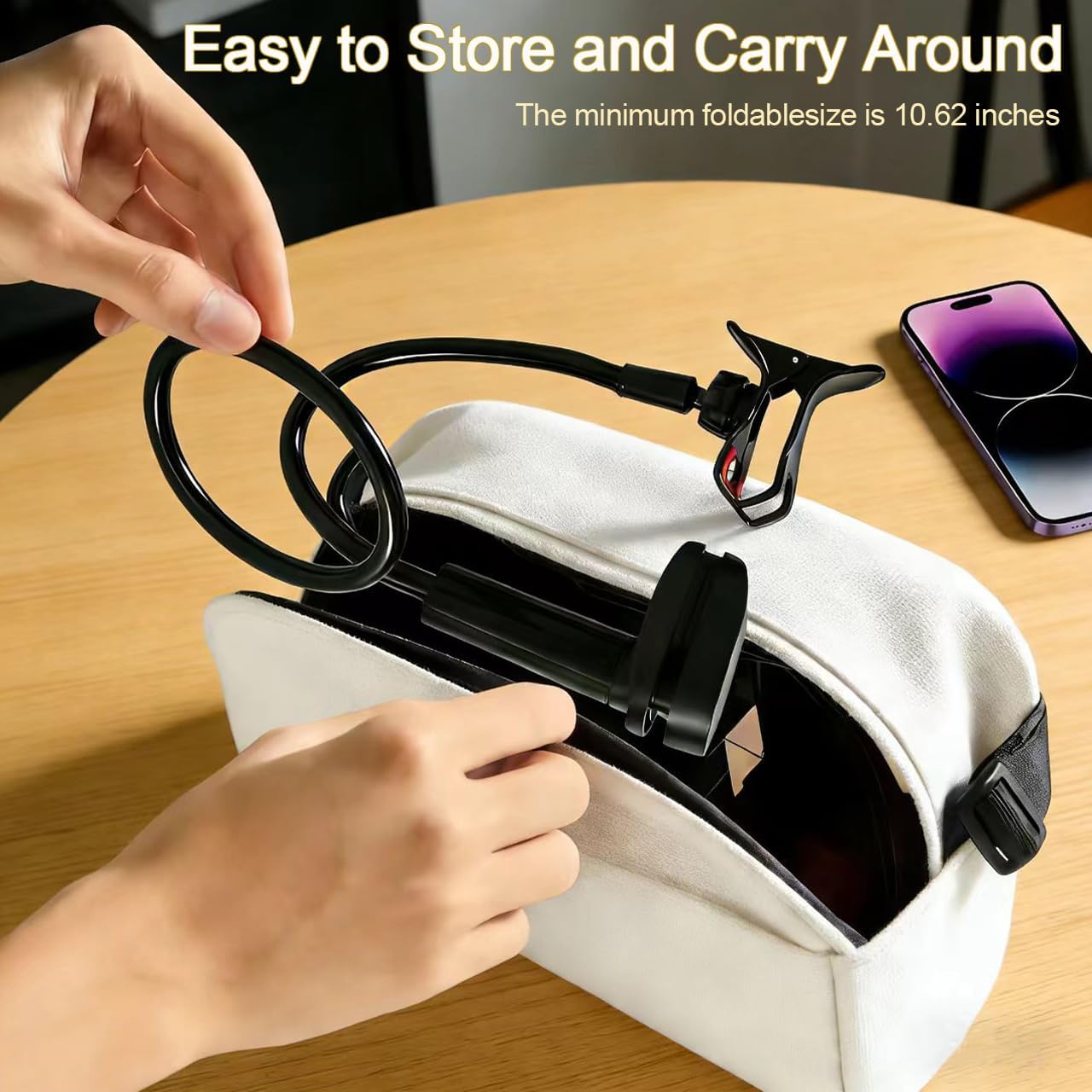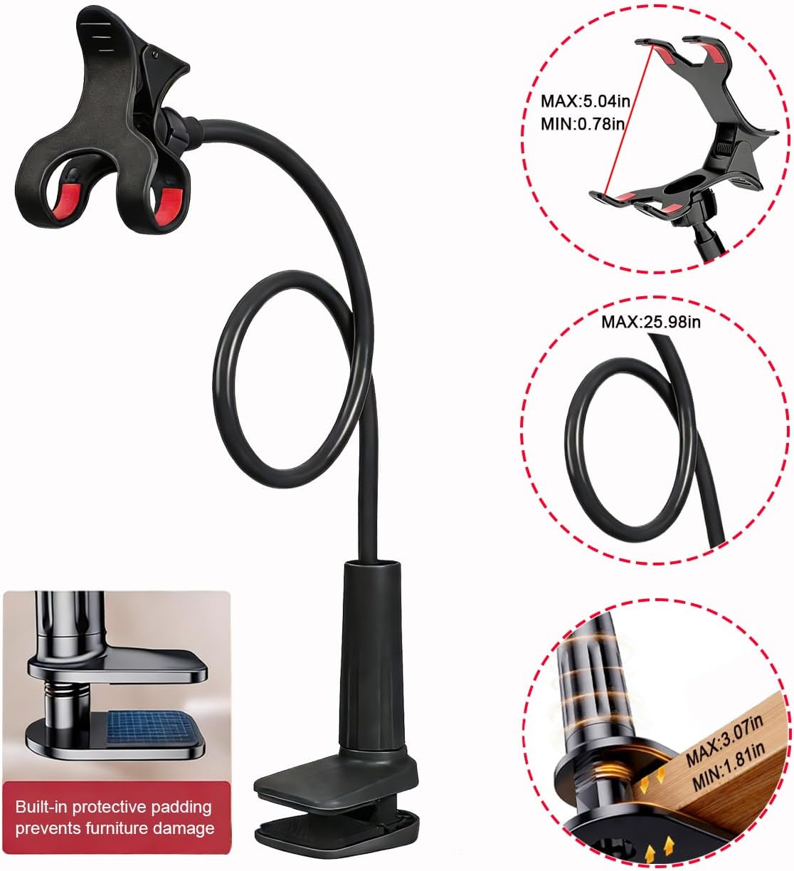 Ultra-Flexible Gooseneck & Strong Clamp – This bed phone holder features a 360° adjustable gooseneck arm made of durable aluminum alloy, allowing you to position your iPhone/Samsung at any angle. The reinforced clamp with rubber padding securely attaches to beds, desks, or headboards without slipping or scratching surfaces.