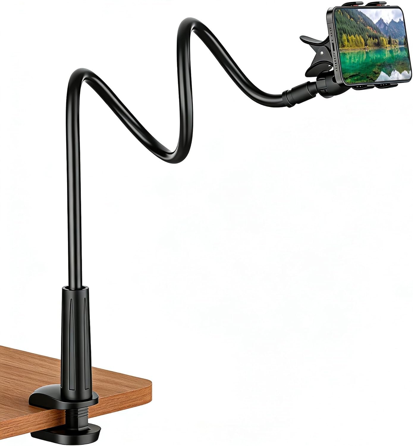 Ultra-Flexible Gooseneck & Strong Clamp – This bed phone holder features a 360° adjustable gooseneck arm made of durable aluminum alloy, allowing you to position your iPhone/Samsung at any angle. The reinforced clamp with rubber padding securely attaches to beds, desks, or headboards without slipping or scratching surfaces.