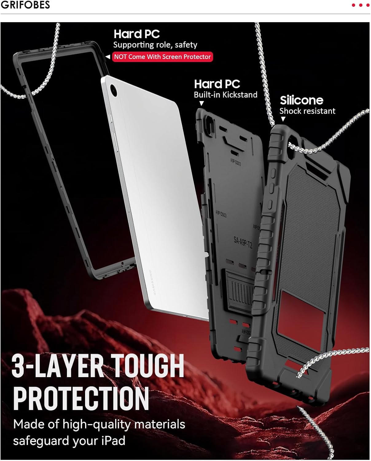 [Shockproof Rugged]- Grifobes galaxy tab A11+/A9+ 5g case is made of high quality flexible Silicone and durable hard PC provides a Military Grade Protection to your tablet against scratches and accidental drops, bumps, shock