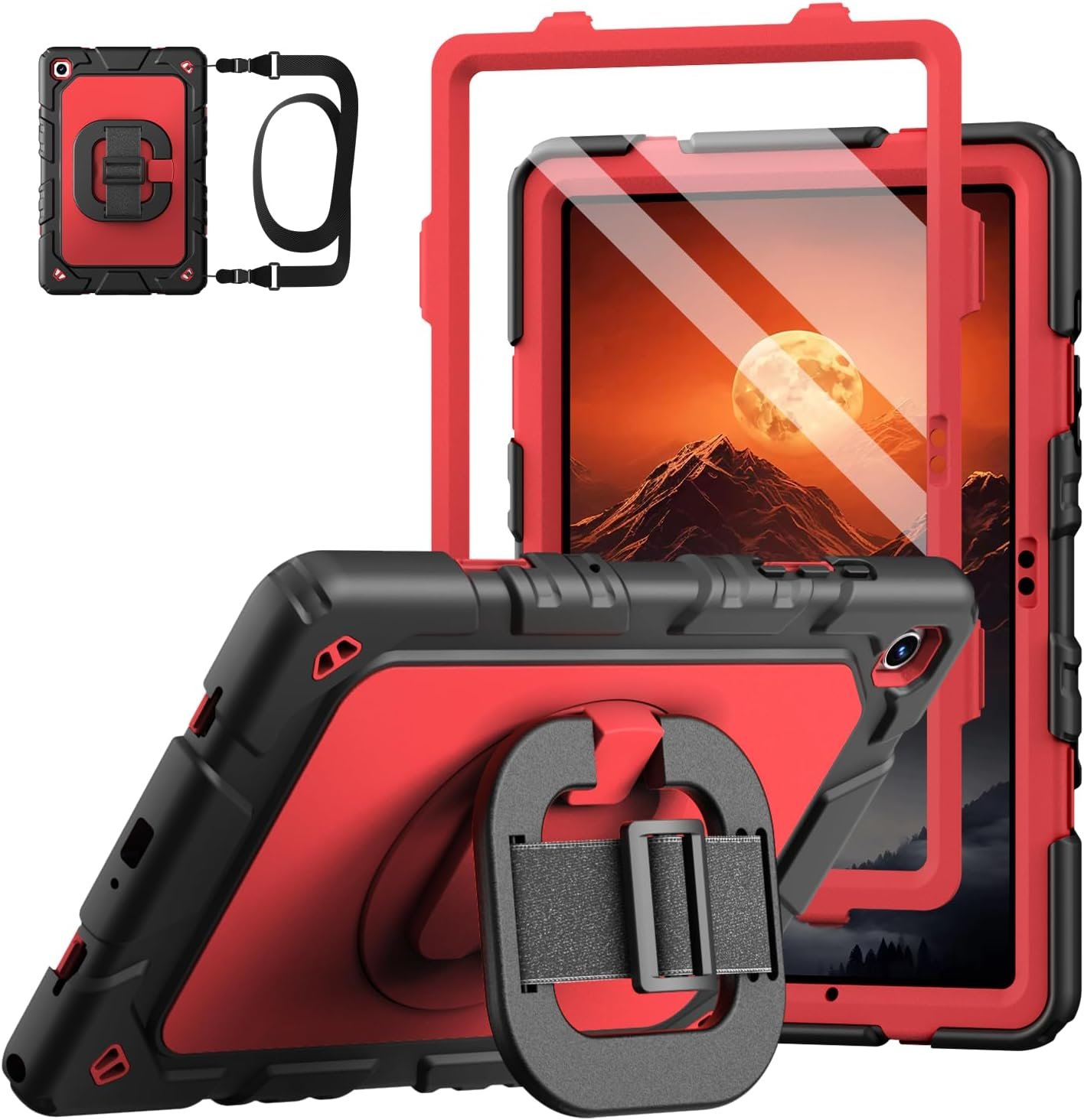 Grifobes for Samsung Galaxy Tab A11 Plus 2025 / A9 Plus 11 Inch 2023 Cases, Shockproof Heavy Duty Cover with Screen Protector, 360 Rotating Stand, Hand & Shoulder Strap for A11+ / A9+, Black Red