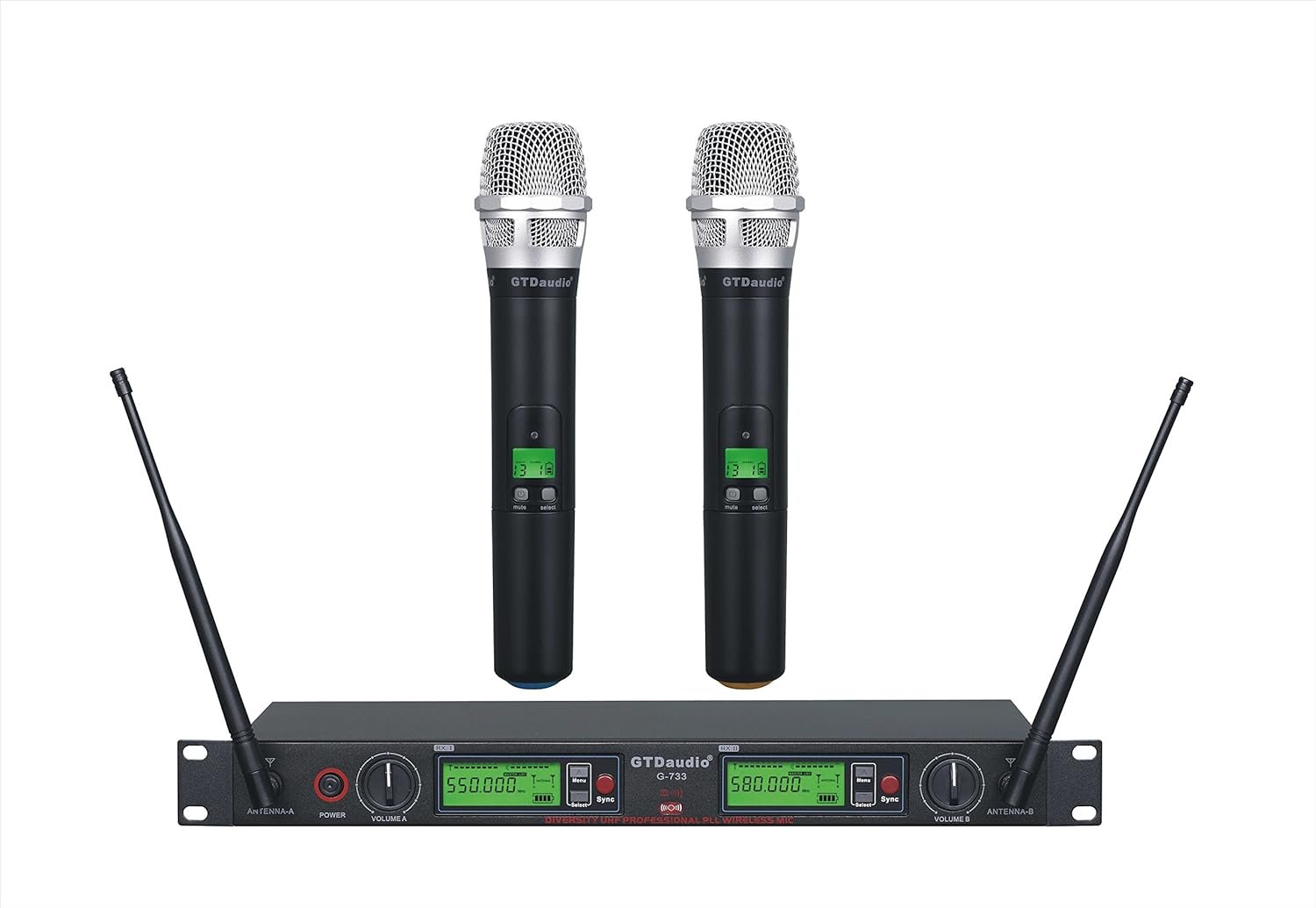GTDaudio 2×800 Adjustable Frequency UHF True Diversity Wireless Handheld Microphone Mic System Ideal for Church, Karaoke, Dj Party, Range 400 ft