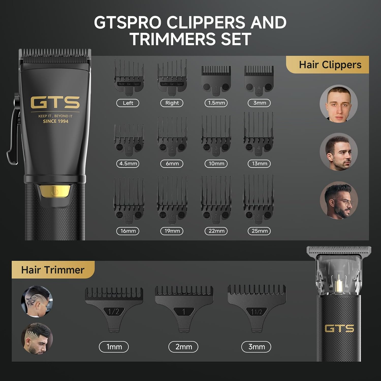 ALL IN ONE HAIR CLIPPERS & HAIR TRIMMER KIT- GTS cordless barber clippers set features a powerful hair clippers and a detail trimmer for achieving all hair styles. Hair clippers for men professional well suitable for home use as well as professional barbers