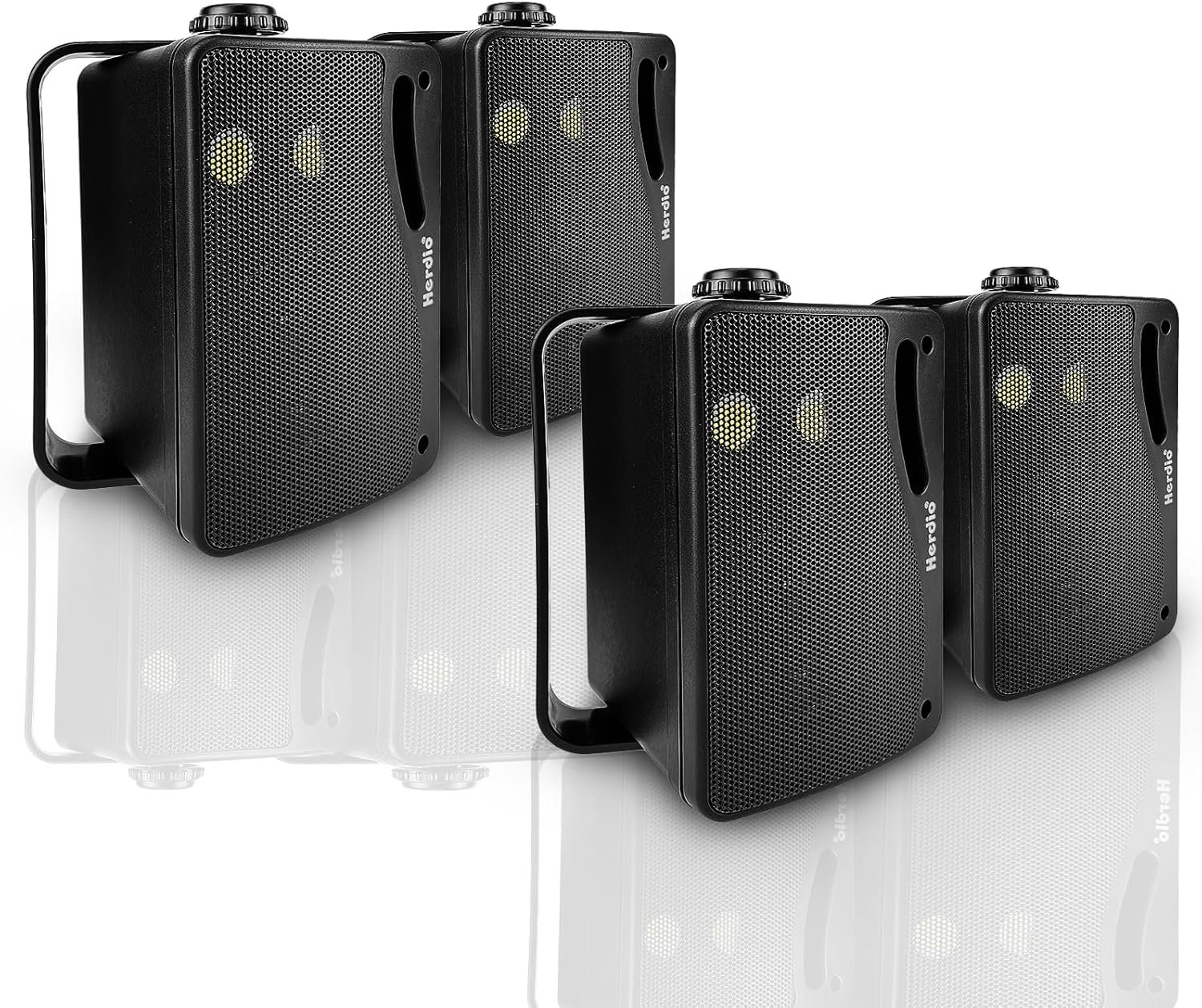 Herdio 3.5 Inch Passive Outdoor Speakers Wired Waterproof Wall Mount Speakers with 400W Superior Sound, All-Weather Durability, for Home Patio Garden Marine Boat Garage Indoor,4-Pack Balck