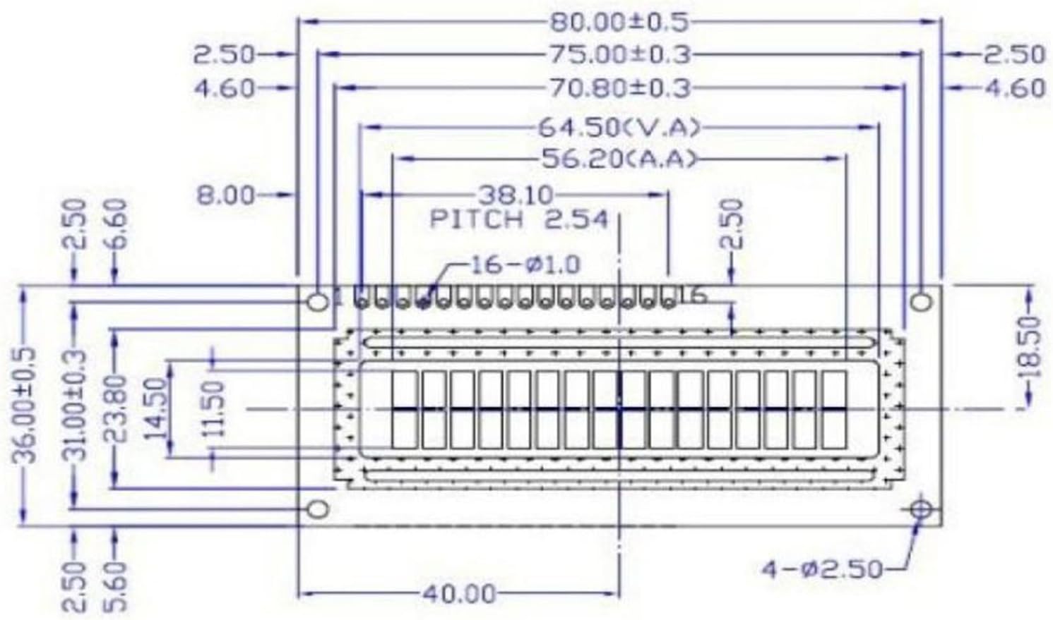 Built-in industry standard HD44780 equivalent LCD controller, Display 2 lines of 16 characters including letter, number, and symbol
