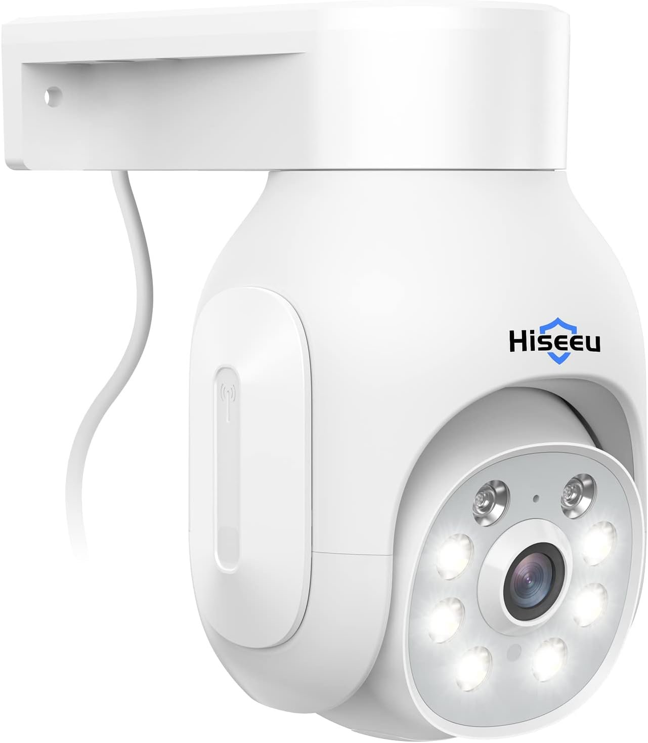 Hiseeu Security Camera Wireless Outdoor, 3MP Color Night Vision WiFi Home Video Surveillance Pan&Tilt 360° with Motion Detection,Siren/Motion/Light Alarm,2-Way Audio,IP66 Weatherproof,Work with Alexa