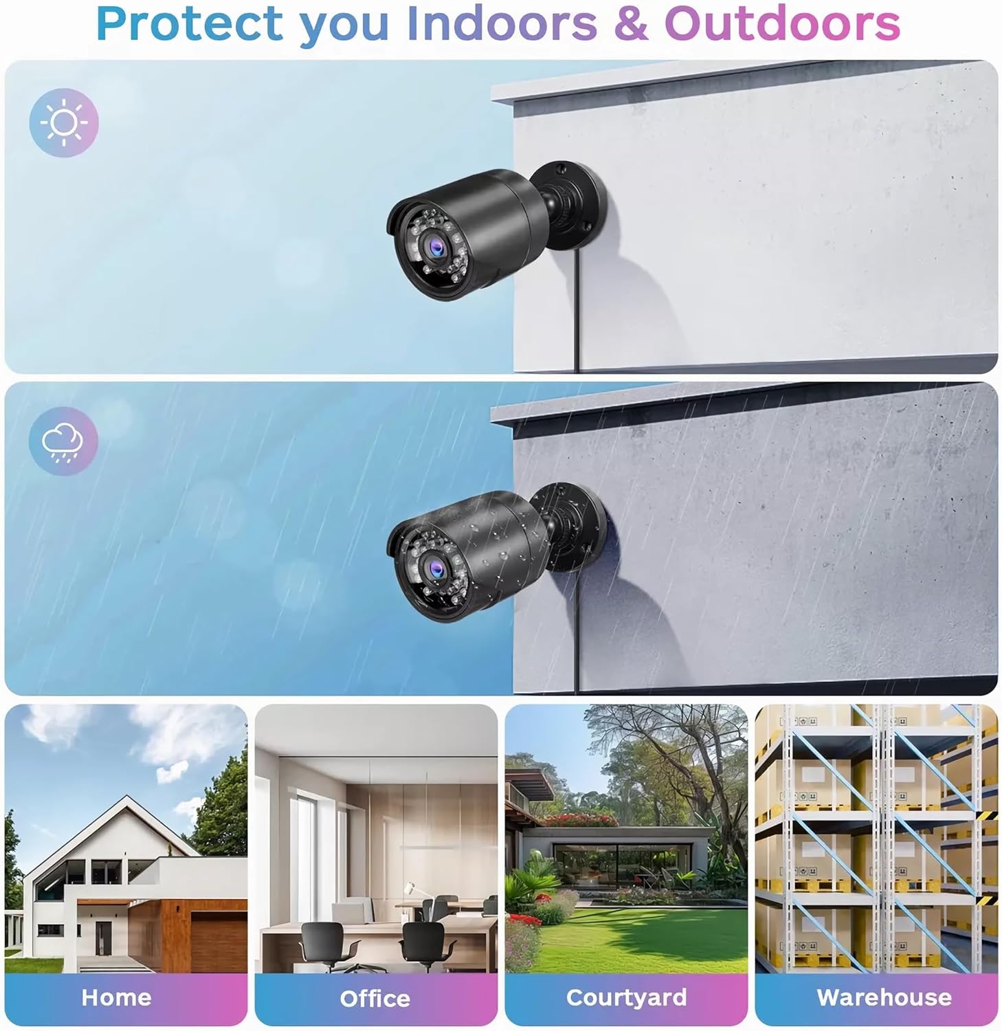 Built-in 500GB Hard Drive – 5MP DVR recorder paired with 4 weatherproof 1080p bullet PoE cameras with 100ft night vision and 90°view angle. You can set DVR to automatically overwrite the oldest footage to make space for new files, or export those video files via a USB drive