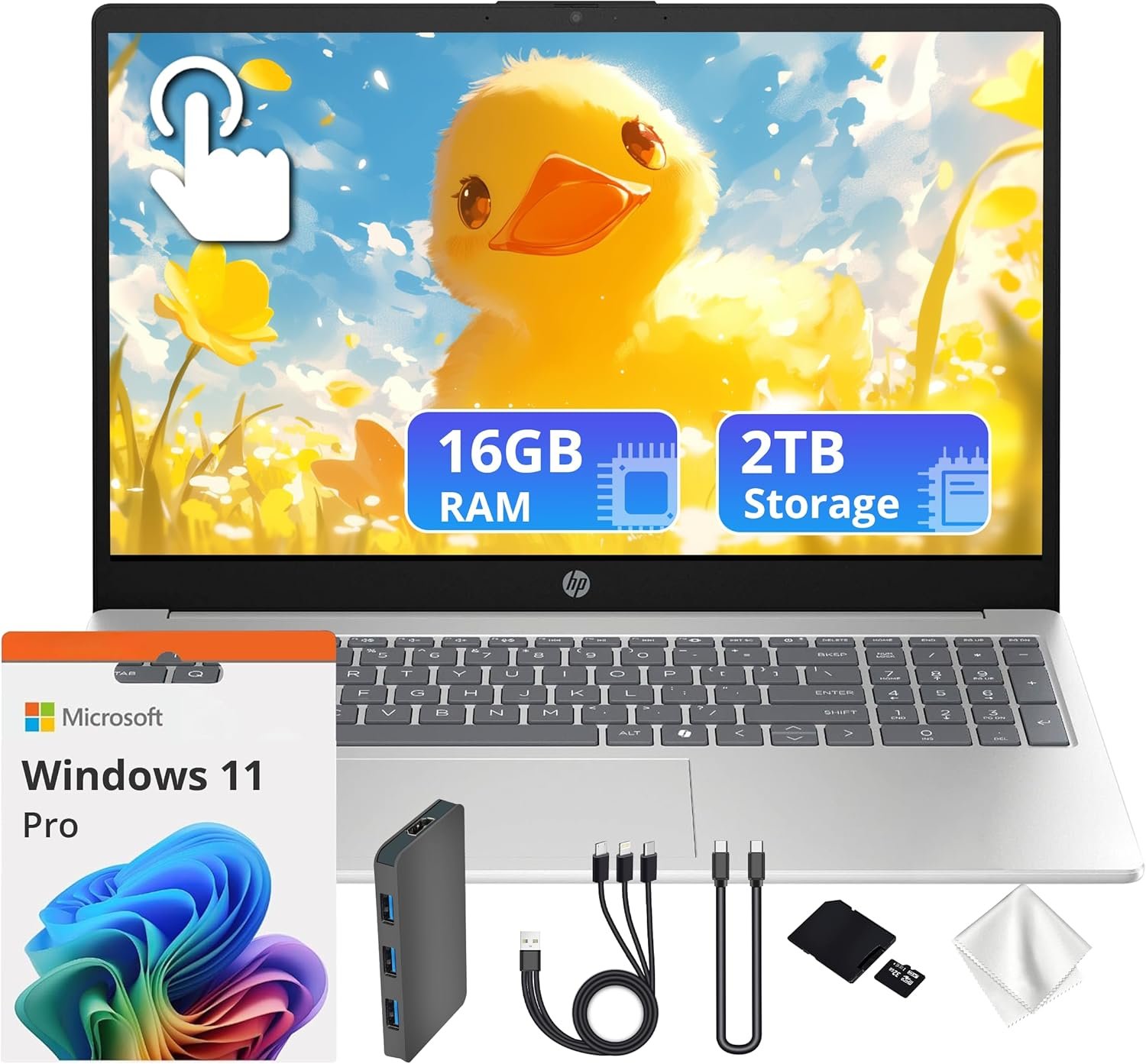 HP 15.6″ FHD Touchscreen Laptop Spectacular Visual Delights–【Upgraded】Seal is opened for upgrade only, 1-year warranty on Upgraded RAM/SSD from White Eagle, and original 1-Year…