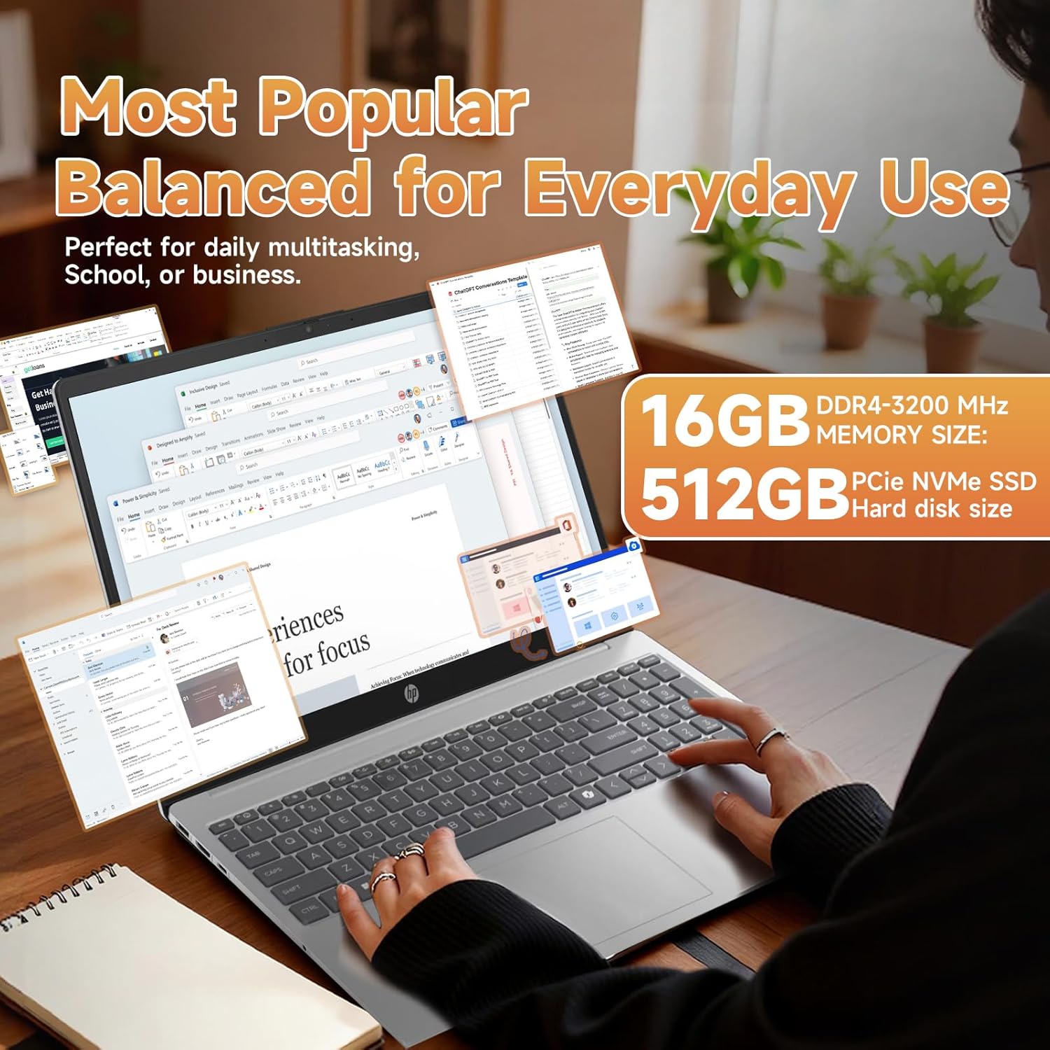 HP 15.6″ Touch Screen Laptop 2026, 13th Gen Intel i3-1315U(Up to 4.5GHz), 15.6 inch Anti-Glare Display, Wins 11 Pro, Wi-Fi 6, AI Copilot for Business & School, Patented KB Kit (16GB RAM | 512GB SSD)