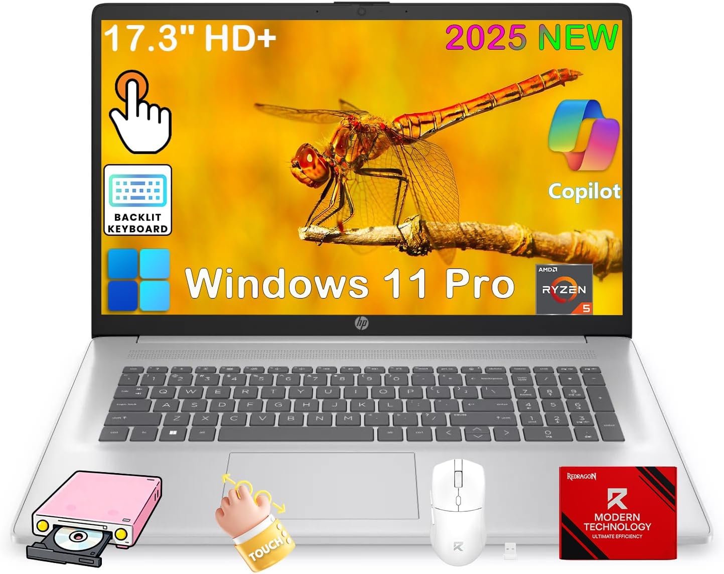 HP 17 Touchscreen Laptop Computer, AMD Ryzen 5 7430U, 17.3″ HD+ AntiGlare Display, 32GB RAM, 1T…
