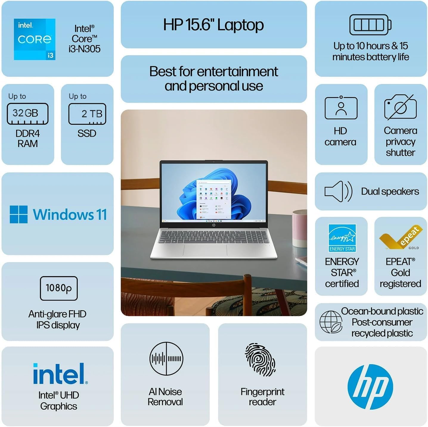 Processor:Intel Core i3-N305 Processor (8 cores, up to 4.4 GHz) Graphics: Intel UHD Graphics Operating system: Windows 11 Home Memory: 16 GB DDR4 Hard Drive: 1 TB PCIe NVMe M.2 Solid State…