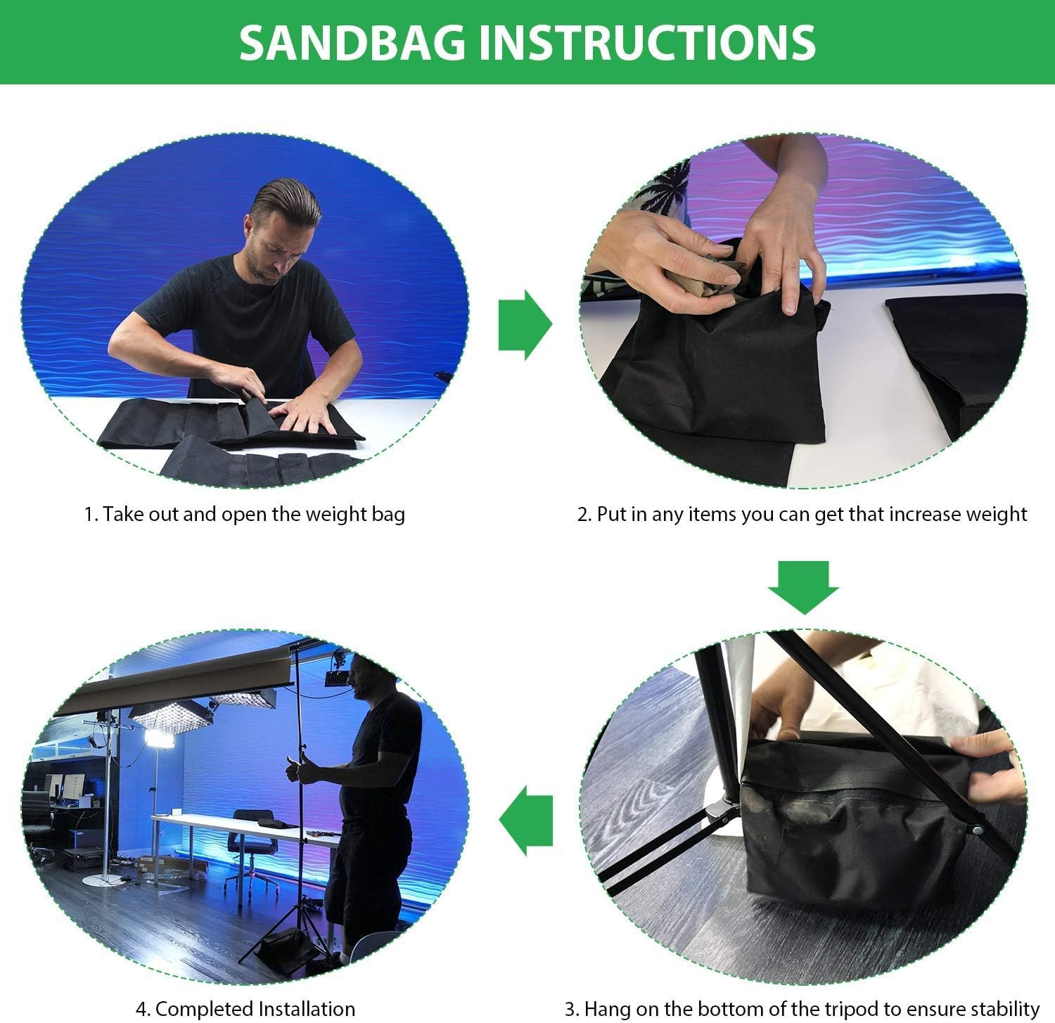2 x SANDBAGS — Once your photo backdrop stand is fully set up, fill the sandbags with anything heavy to weigh the whole frame down and prevent movement.