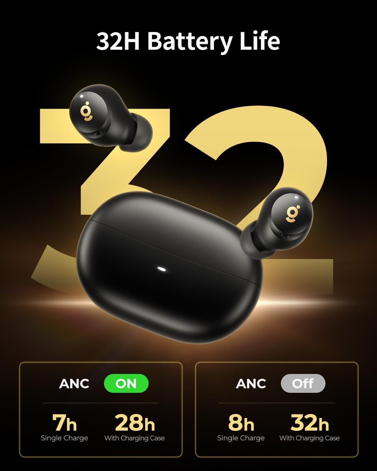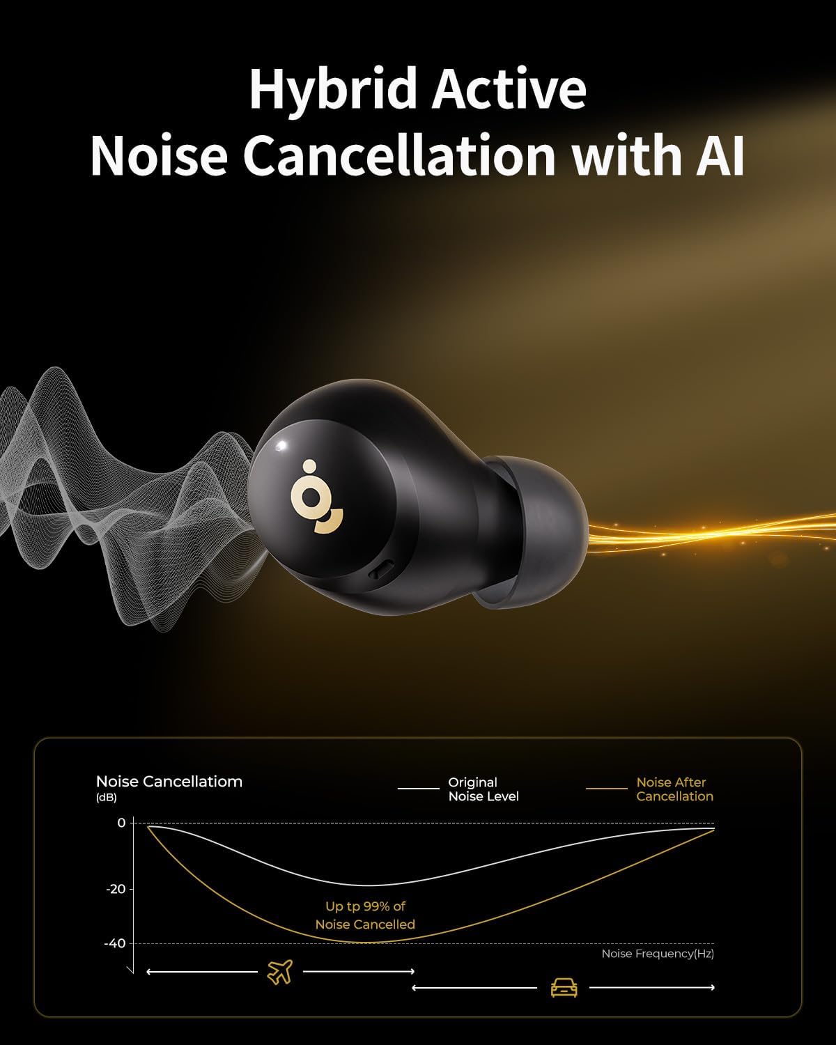 【Hybrid Active Noise Cancelling】These noise cancelling earbuds deliver up to 40 dB noise reduction with advanced hybrid ANC, offering fully immersive music enjoyment. 6 built-in mics in the Bluetooth earbuds reduce ambient noise, ensuring clear calls even in noisy environments
