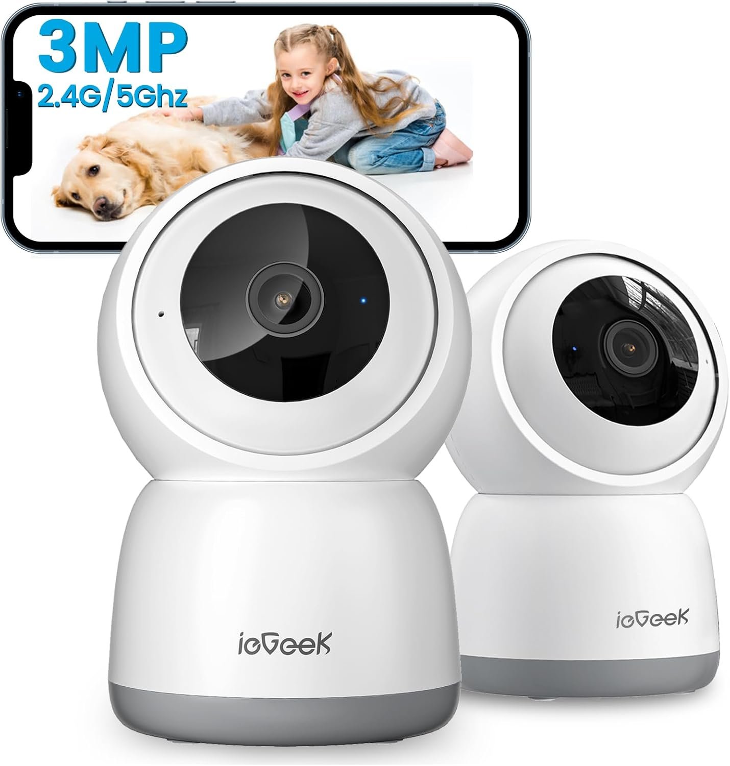 ieGeek 2K Indoor Security Camera, 5G/2.4G WiFi Pet Cameras for Home Security, 360° Dog Cam w/Auto Tracking, Smart Motion Detection, Phone App, Baby Monitor, 3MP Night Vision, Works with Alexa(2 Pack)