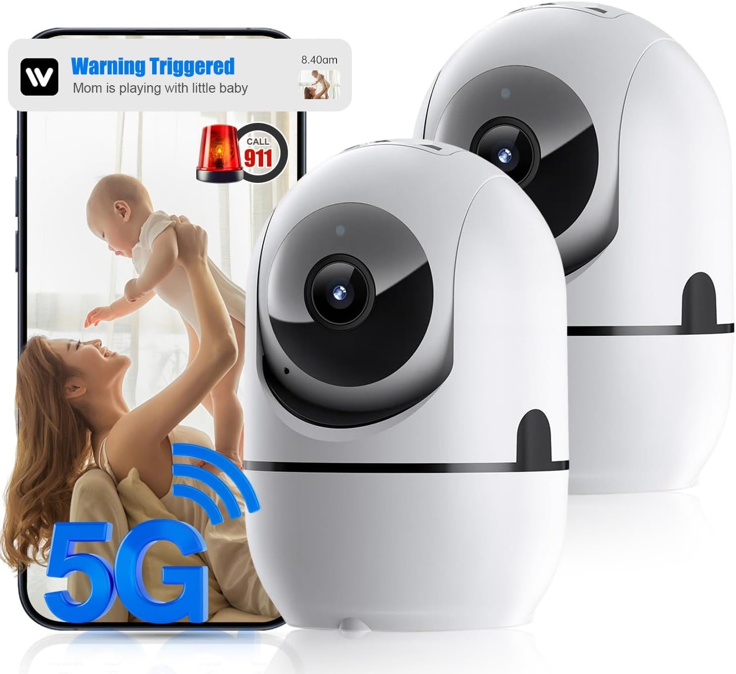 Indoor Security Camera – 5G & 2.4GHz Dog/Pet WiFi Security Camera & Motion Detection, 360° Pan/Tilt Plug-in Indoor Camera for Home Security, Smart AI 911 One-Click, US Cloud Storage (2Pack)