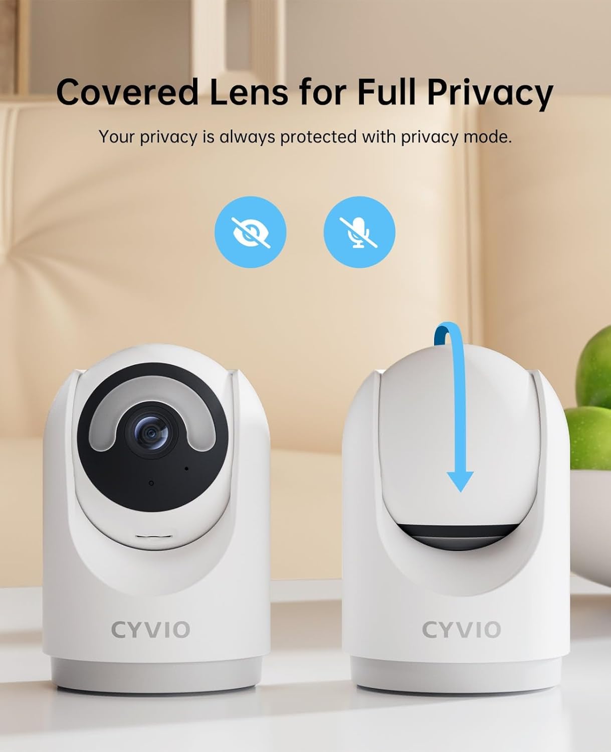 Privacy Mode hides the lens and stops video and audio recording, keeping you fully protected.