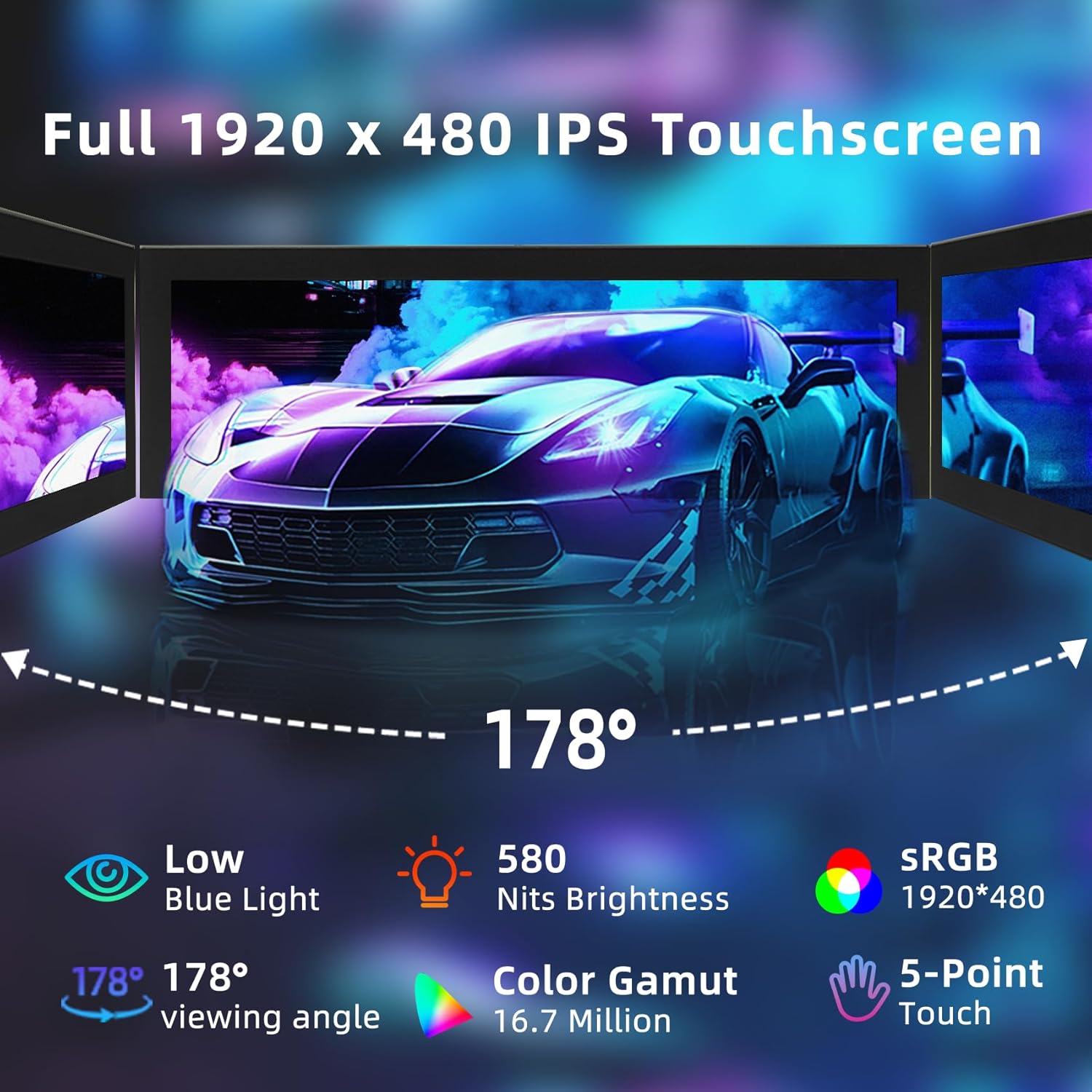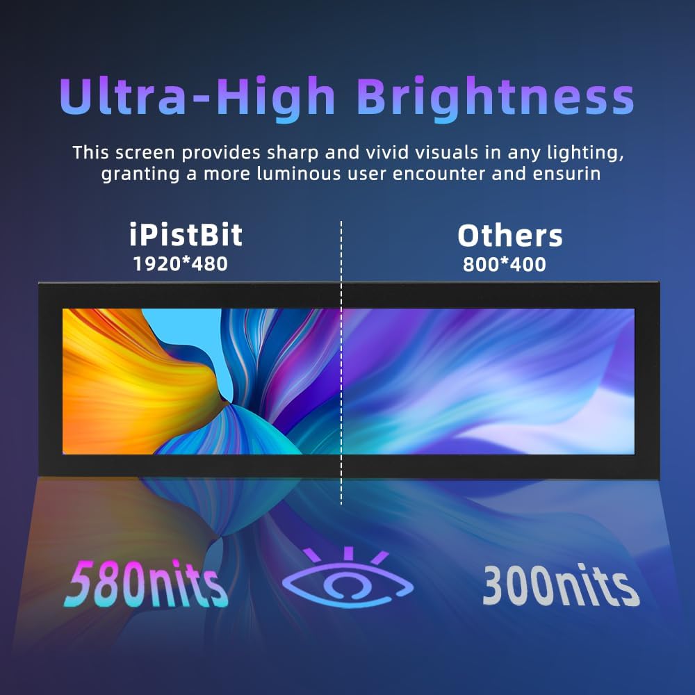 Computer Secondary Monitor is equipped with 1920×480 high-resolution screens, and has adjustable brightness of 580cd/m². It supports IPS full-view display, delivering clear and smooth visual experiences.