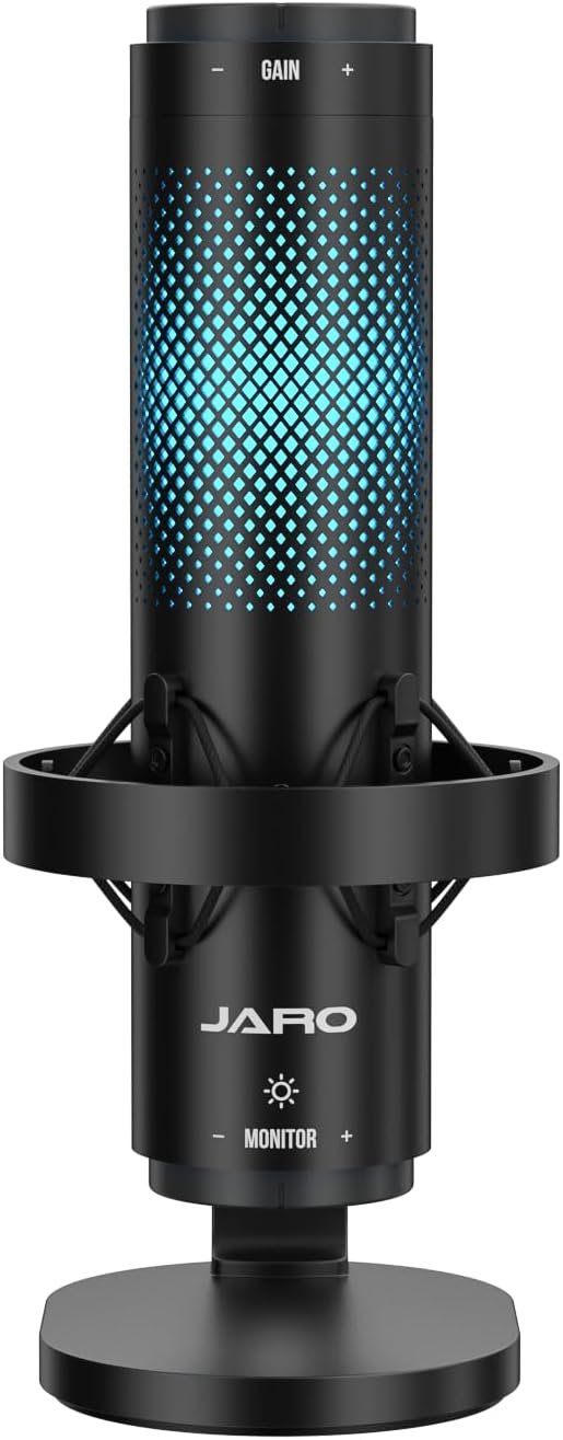 JARO USB Multi-Polar Pattern Condenser Microphone with Mute Noise Cancelation RGB for Podcasting Gaming Streaming YouTube Zoom AMSR Singing Recording [Compatible with PC Laptop Mac PS4/5], J101-CS