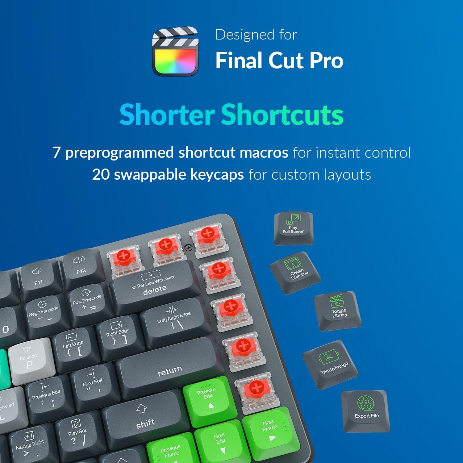 JCPAL Final Cut Pro Keyboard • Dash Wireless Shortcut Keyboard for Mac and PC • Shortcut
