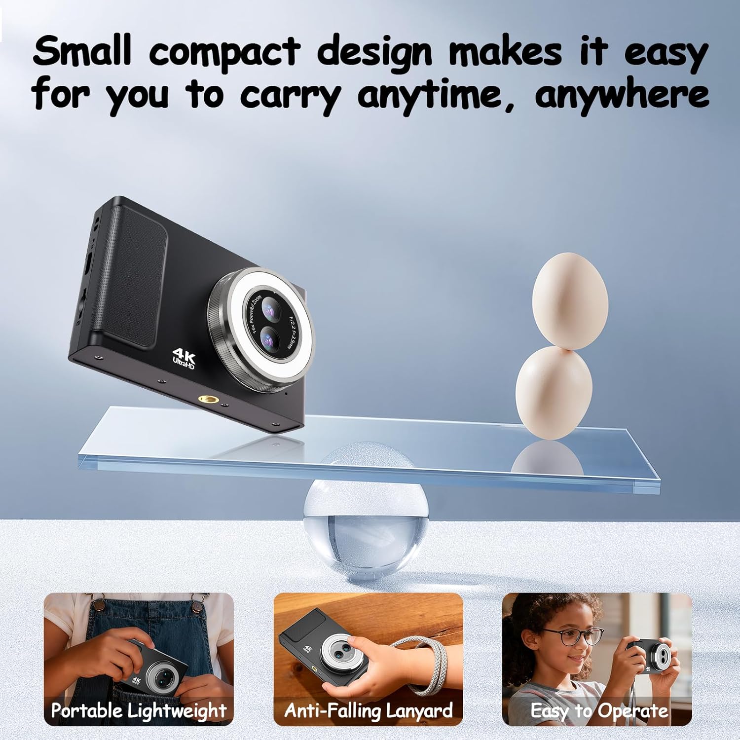 Compact for On-the-Go Adventures: Designed for convenience, this travel camera is durable yet lightweight, easily fitting into pockets for everyday adventures.