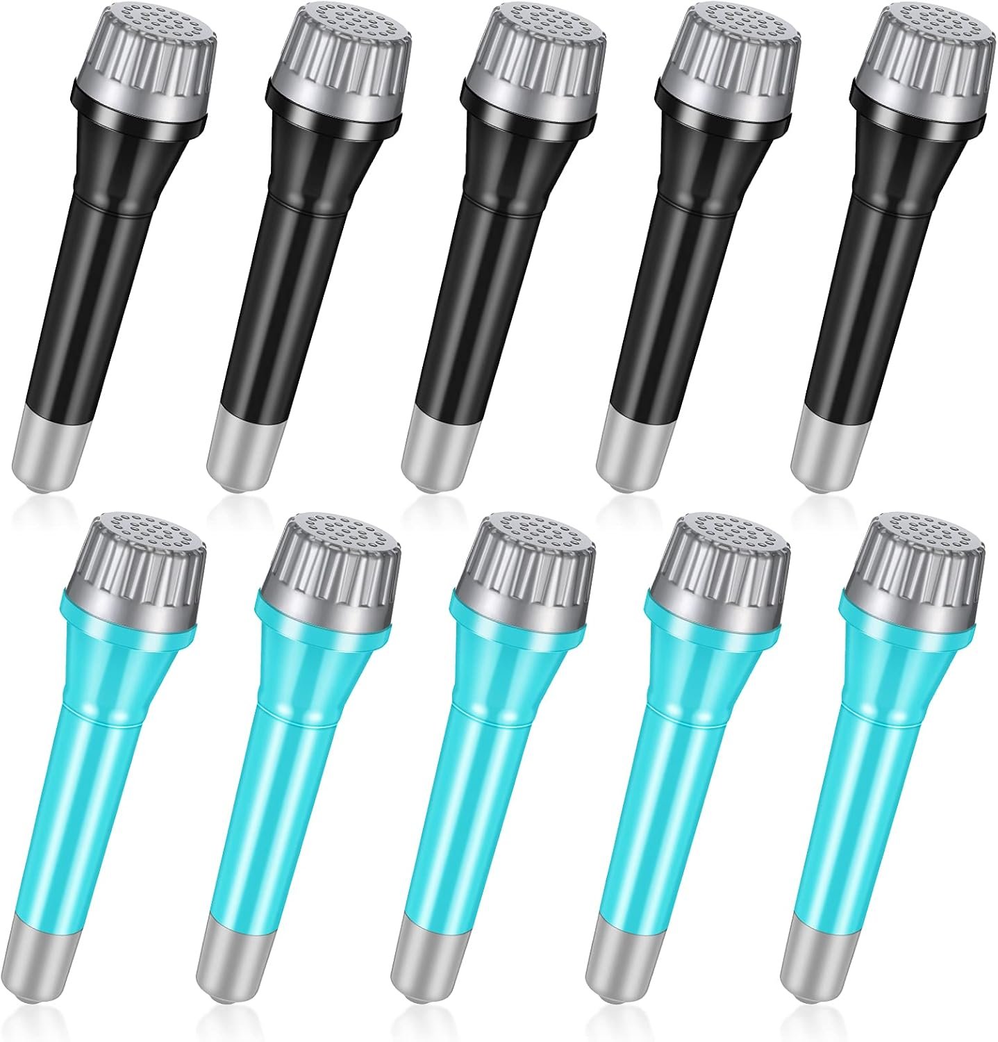 Jerify 10 Pieces Plastic Toy Microphone Set 5.7 Inches Fake Plastic Microphone Toy Pretend Play Karaoke Props for Boys Girls Christmas Halloween Birthday Party Gift Supplies, Black and Blue Colors
