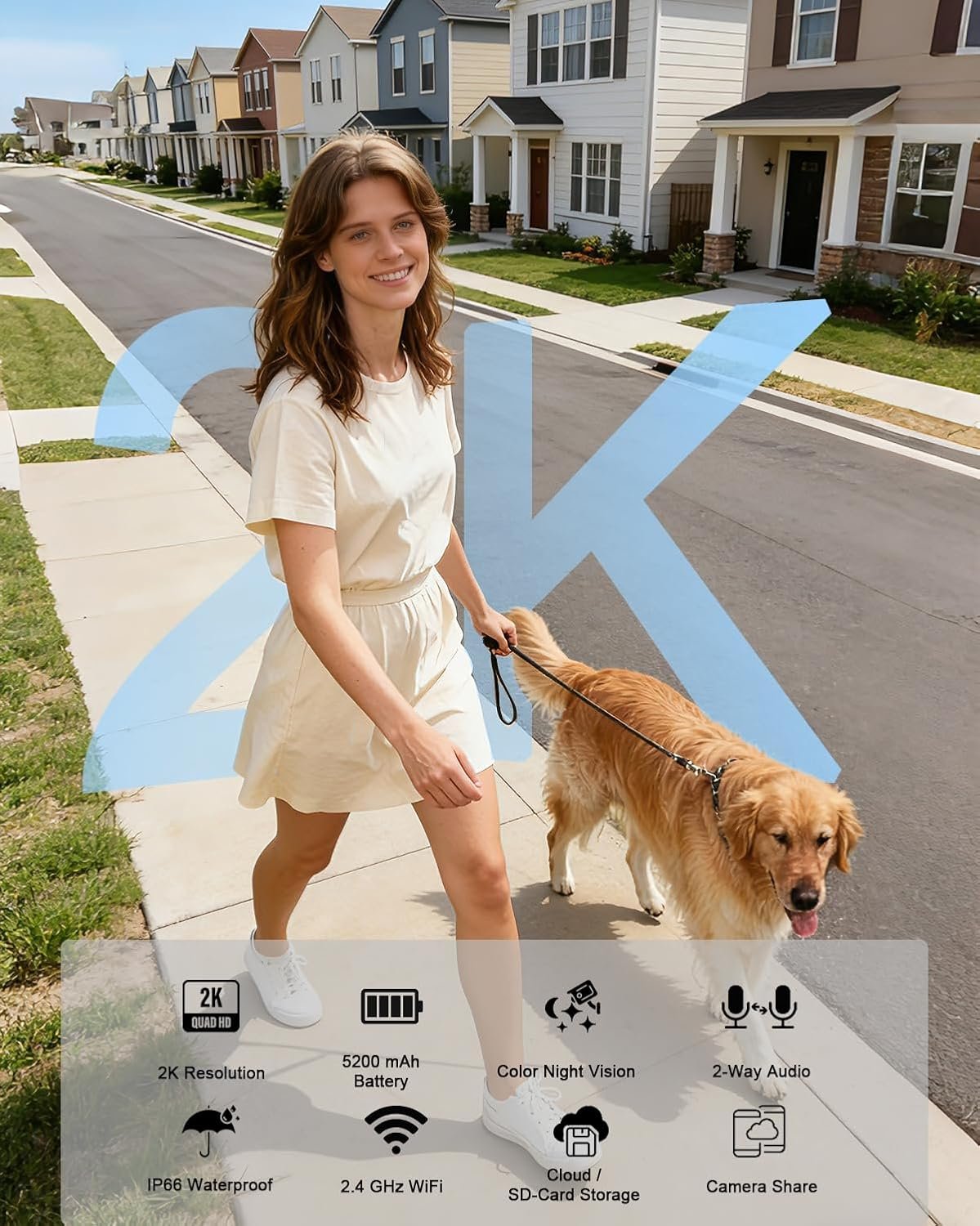 JOOAN 2K Wireless Security Camera Rechargeable Battery Outdoor Indoor for Home Surveillance,2.4G WiFi IP66 Waterproof Motion Detect & Alert Color Night Alert Record, Cloud/Card Storage