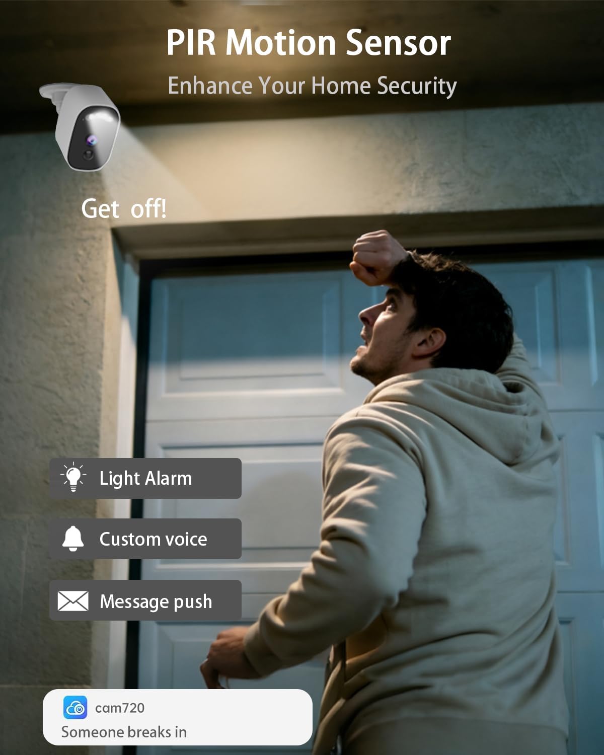 Smart Motion Detection&Sound Alarm&Message Push – Once the wifi IP camera detects a moving object entering the monitoring area, outdoor security camera will sound an alarm voice and your phone will receive a message push. You can also customize the detection sensitivity (high, medium, low) of your outdoor camera, which can reduce false alarms by 90%!