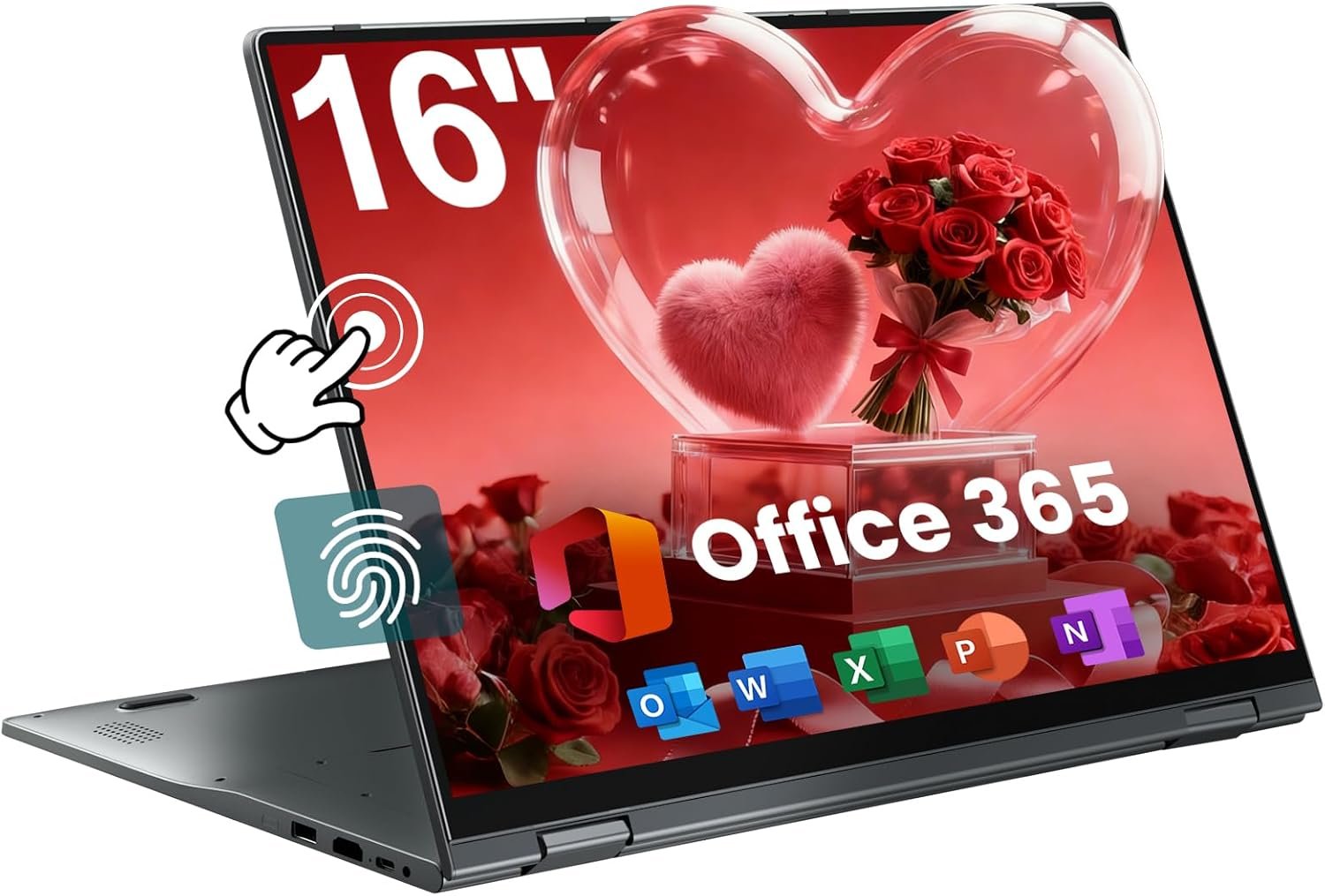 jumper 16 inch Convertible Laptop, Laptop Computer with Quad Core N95 Processor (Up to 3.4GHz), 16GB DDR5 RAM 640GB Storage, 360 Degree Touchscreen, Backlit Keyboard, Fingerprint Reader, BT5.2, WiFi 6