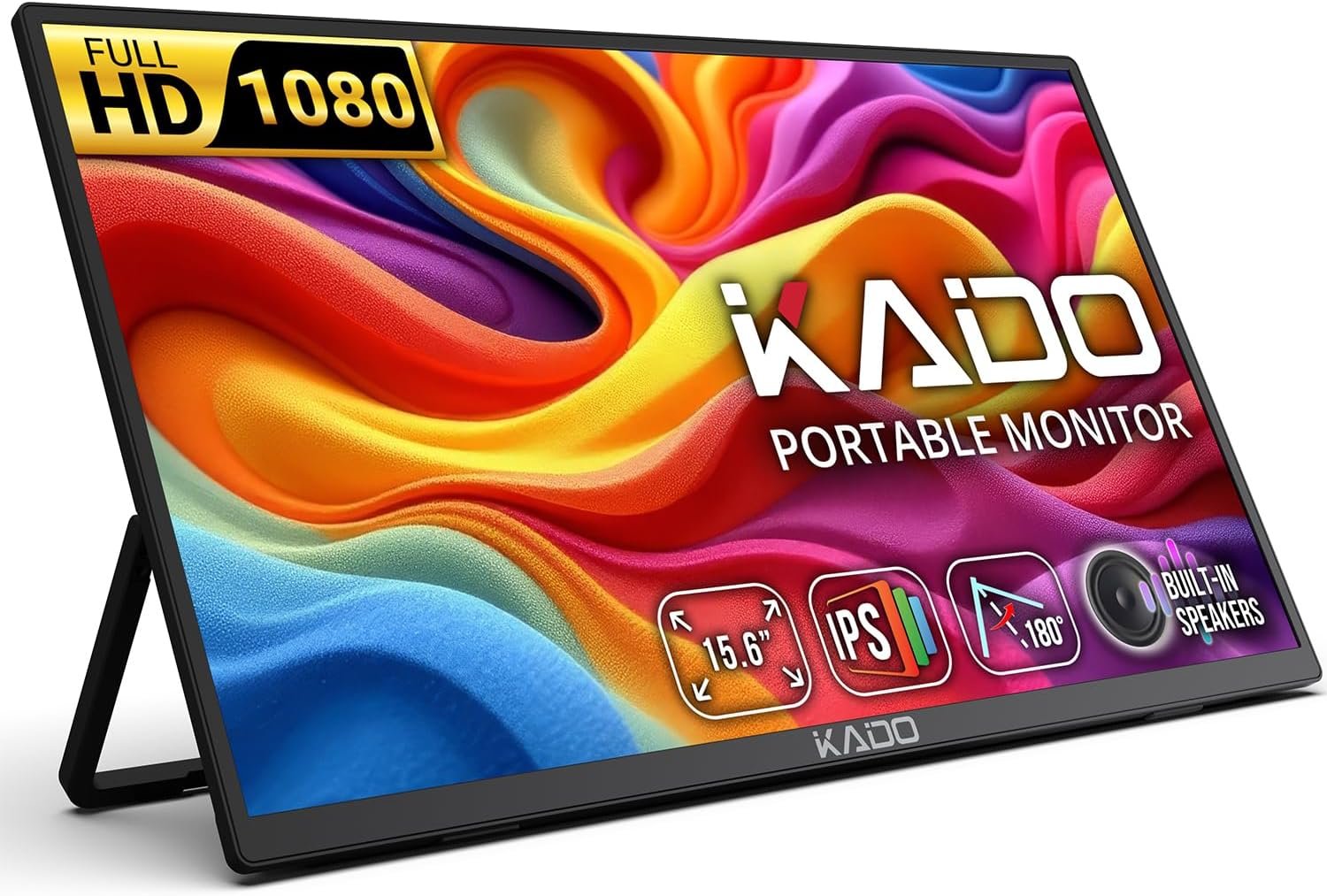 Kado 15.6 Inch FHD 1080p Ultra-Slim Laptop Monitor 1920×1080, IPS Second Display 180° Adjustable Kickstand, Screen Extender for PC, Mac, Phone, Xbox, PS5, USB-C & HDMI Connectivity