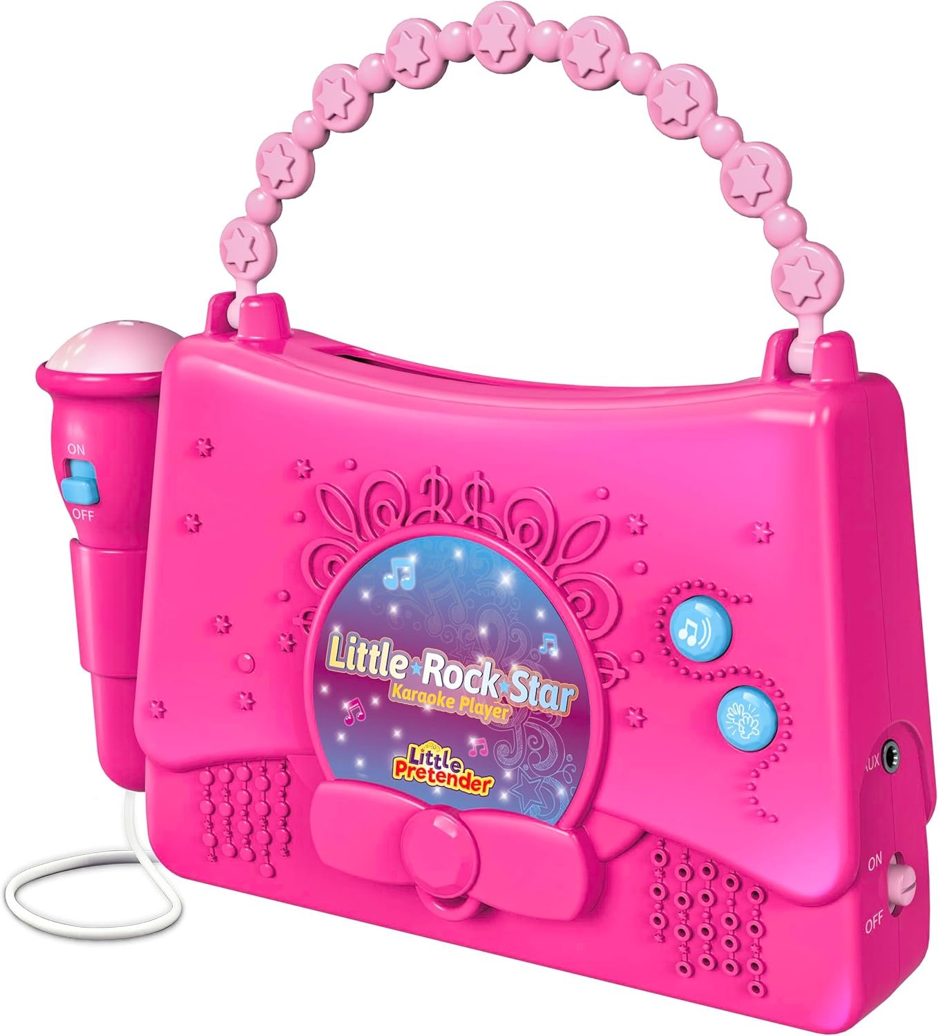 Multi Play – Light up your little girl’s world with the Little Rock Star Karaoke Player! Features a Sing-Along, 10 Built-In-Songs, Aux Input and mp3 dock for unlimited music play.