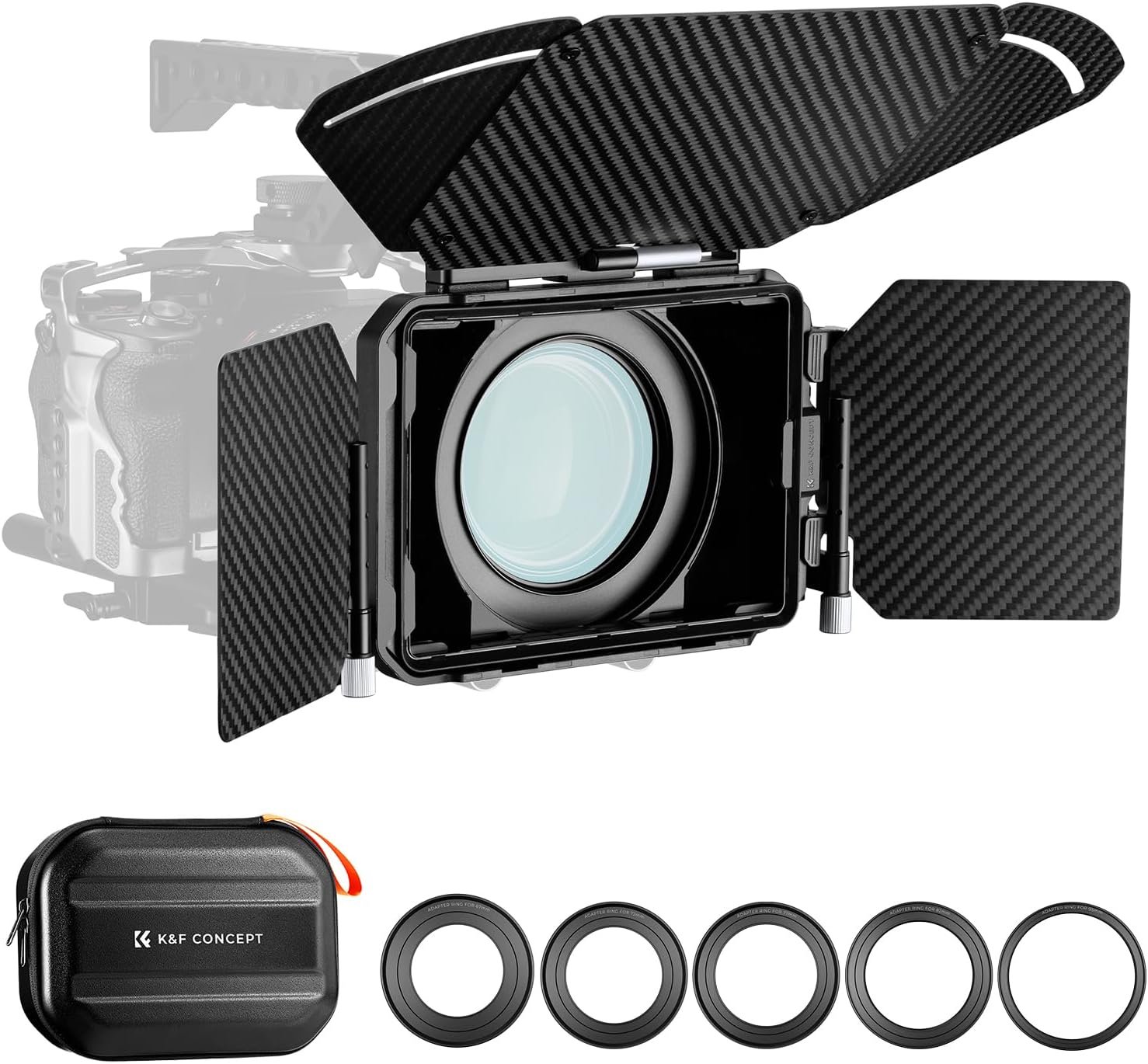 K&F CONCEPT Mini Matte Box, DSLR Camera Matte Box with Carbon Fiber Top Flag Side Wings Square Filters Trays, for 67/72/77/82/95mm Lenses, for 4×5.65 Square ND UV Filter/Circular Filter