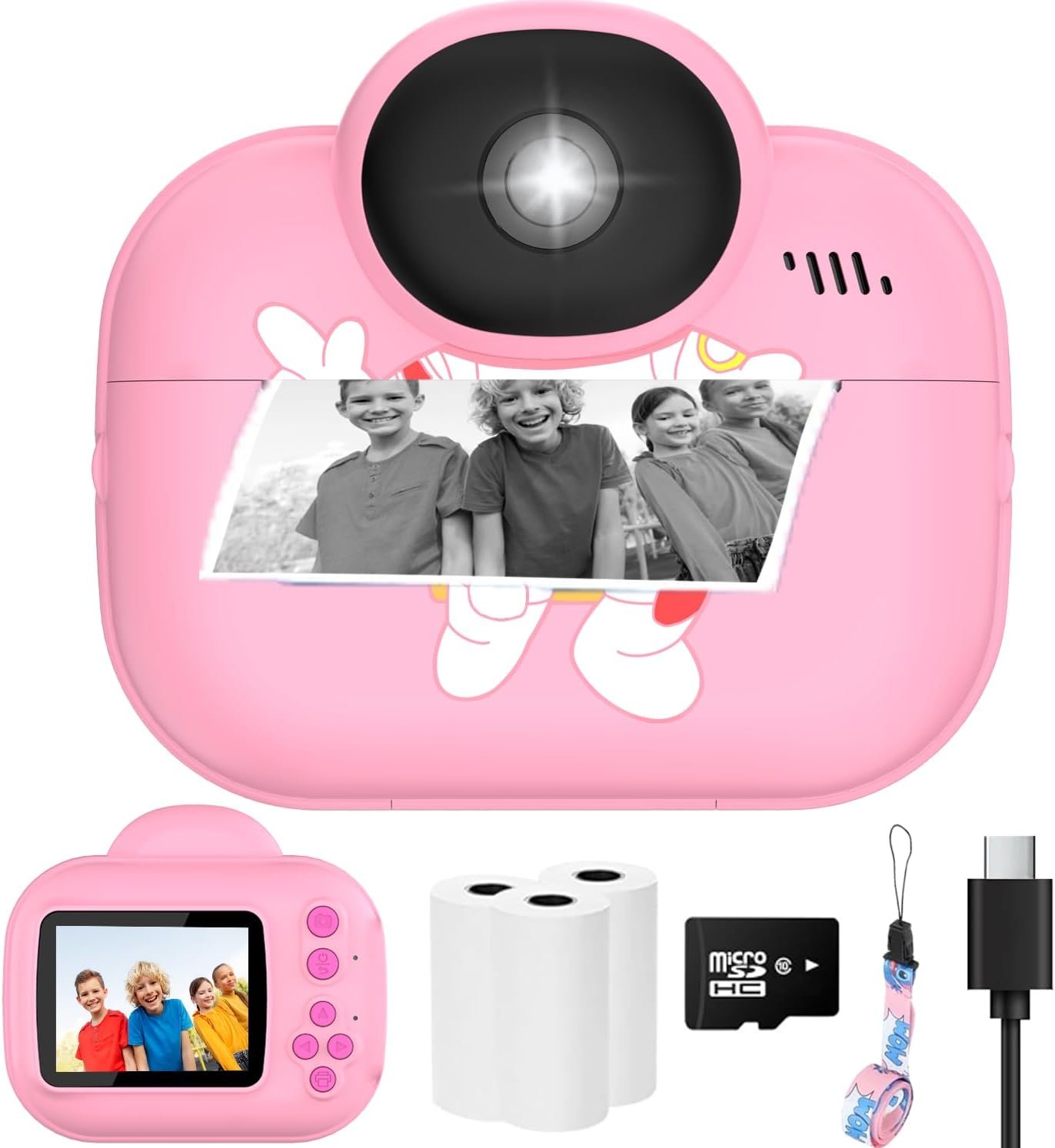Kids Camera Instant Print Camera for Kids, Toddler Cameras for Girls, 1080P HD Digital Video Cameras, Instant Camera Toy for 4 5 6 7 8 9 10 Year Girl Grandkids with SD Card (Pink)