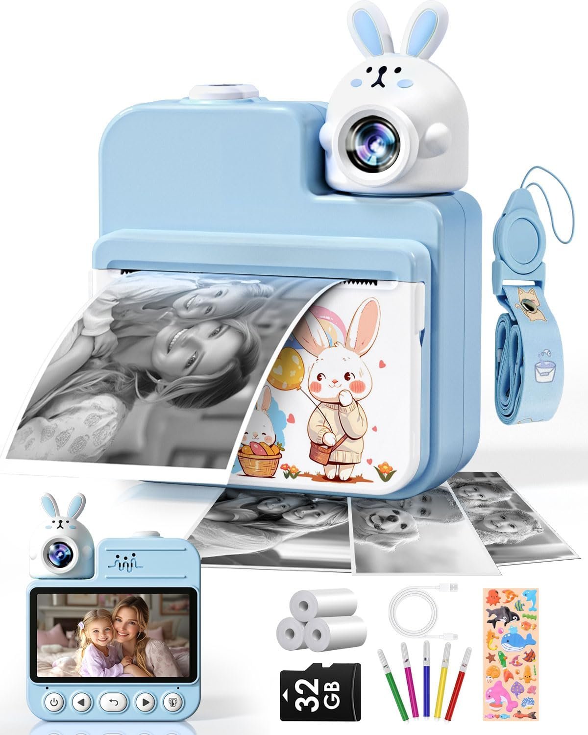 FULL HD 1080P VIDEO & 32MP PHOTOS: Capture life’s precious moments in stunning detail with Full HD 1080p video and 32MP photos. This high-resolution camera for kids delivers exceptional image quality, ensuring that every memory is beautifully preserved. Child can create and share high-definition videos and vibrant photos that showcase their creativity and adventures. Perfect for documenting playdates or family vacations, the instant print camera takes children’s photography to the next level