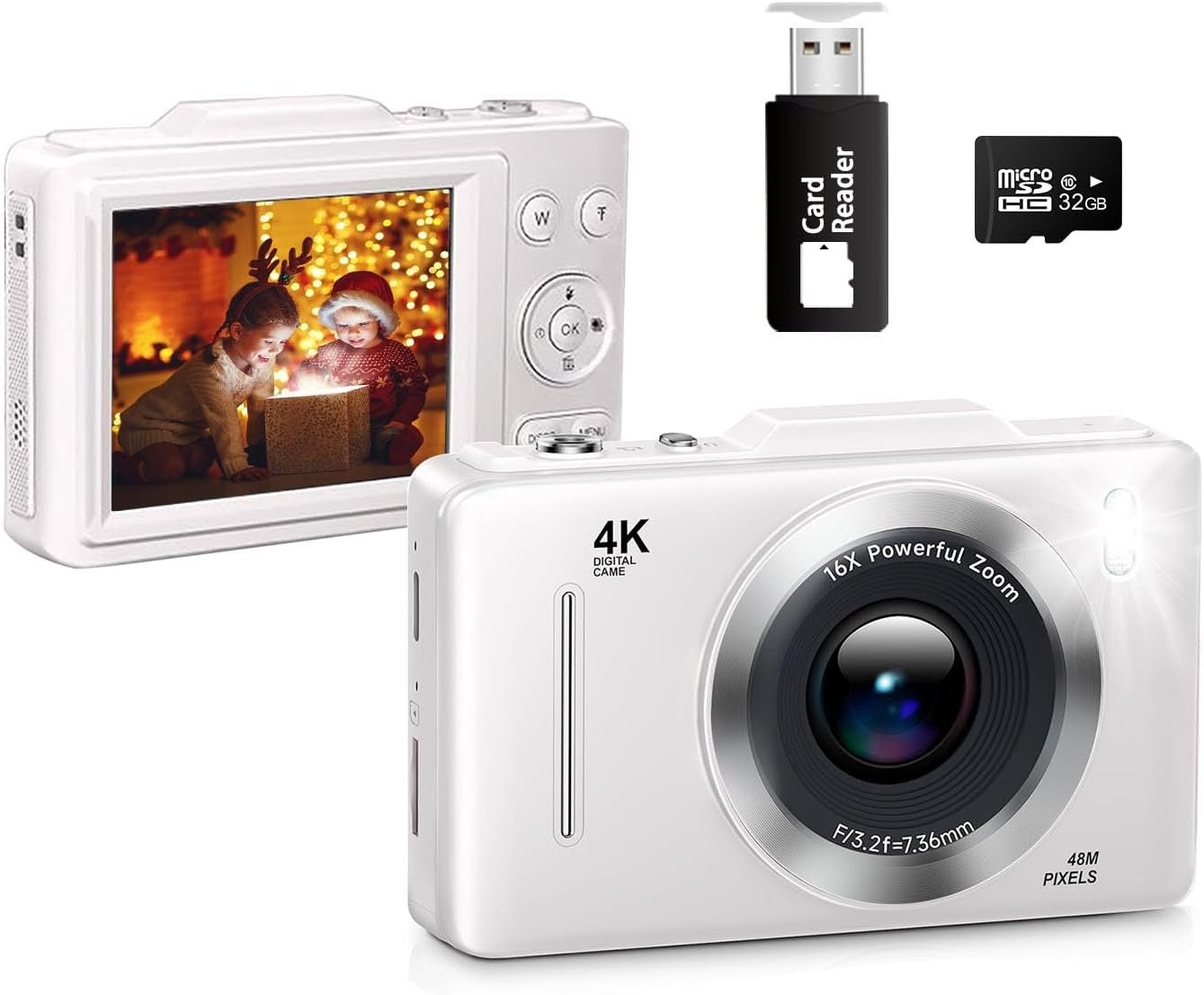 Kids Digital Camera,4800MP Selfie Camera,4K 1080P HD Video,with16X Zoom Anti Shake,Kids Chritmas Birthday Festival Gift – 32G SD Card