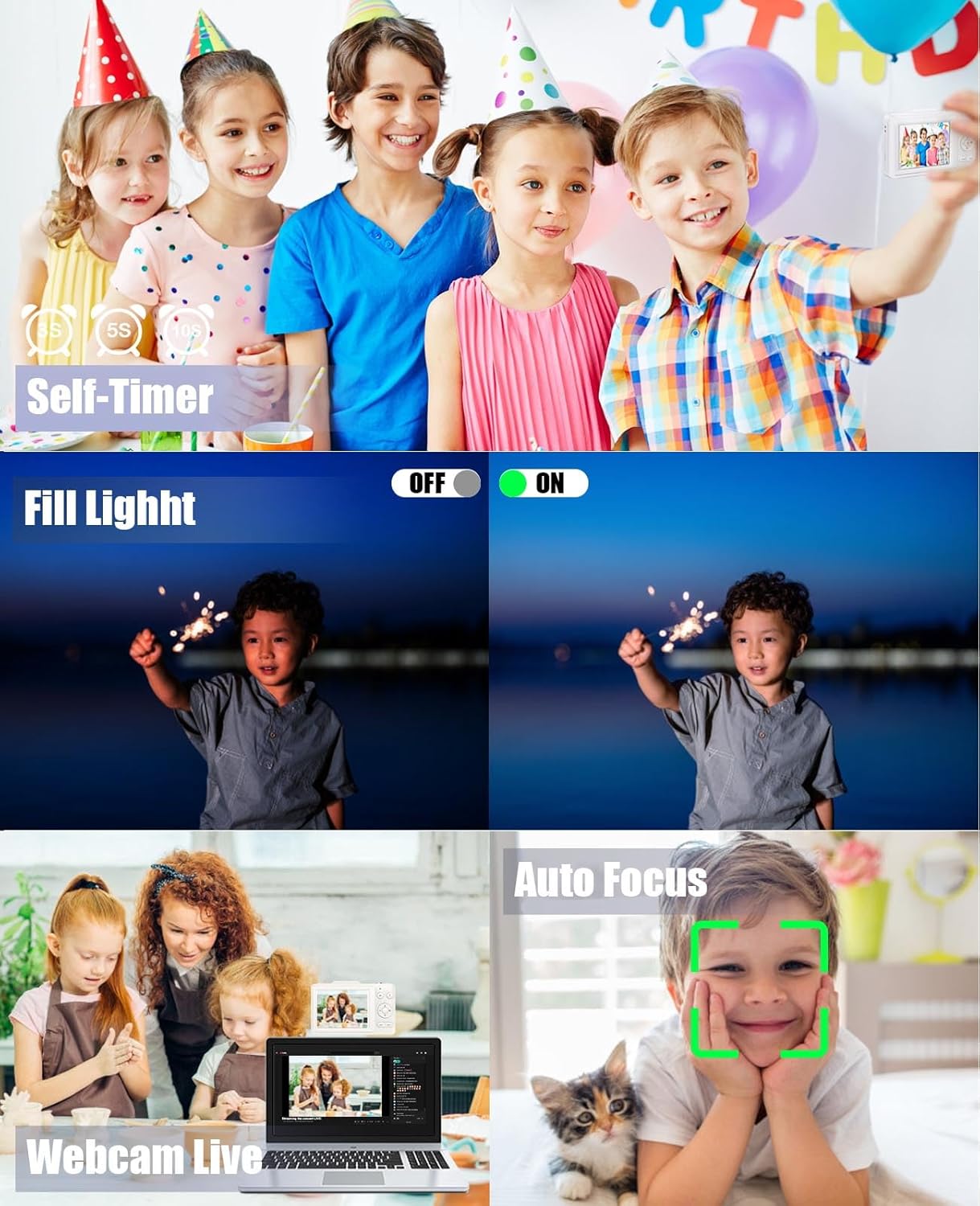 【Multiple Functions Kids Camera】: A built-in microphone captures clear audio,and a 2.8-inch IPS screen pairs with easy controls, beauty mode, 3-shot burst, and self-timer, making this kids digital camera ideal for Vlogging and beginners,It’s a great camera for kids or even a camera for fun.